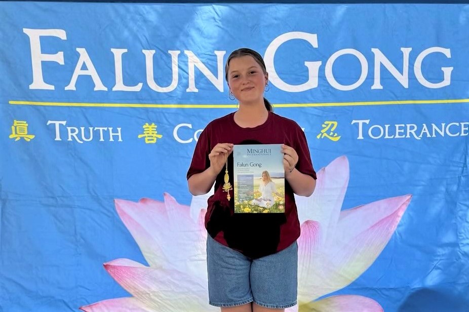 少女爱丽·唐斯(Ally Downs)表示法轮大法真、善、忍法理可以帮到这个世界,“这个社会需要很多帮助,有很多人不太好,他们需要帮助,他们需要对自己诚实。”