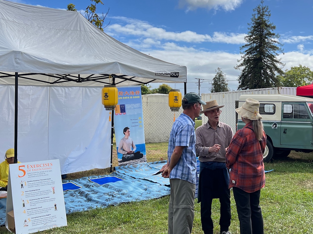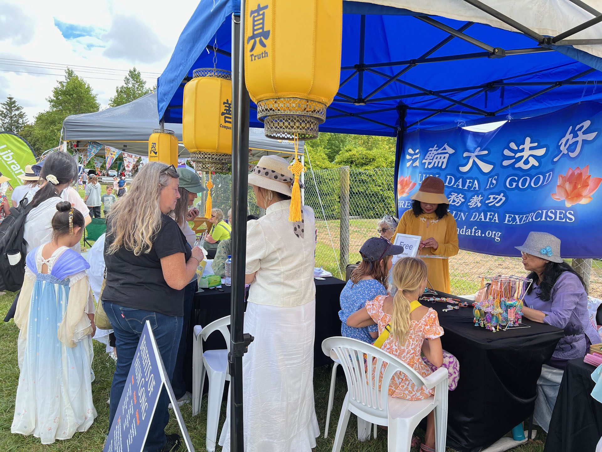 一位华人路过法轮功展位驻足观望,他说他从来不相信中共,因为小时候接受的都是洗脑灌输,不会让你思考。