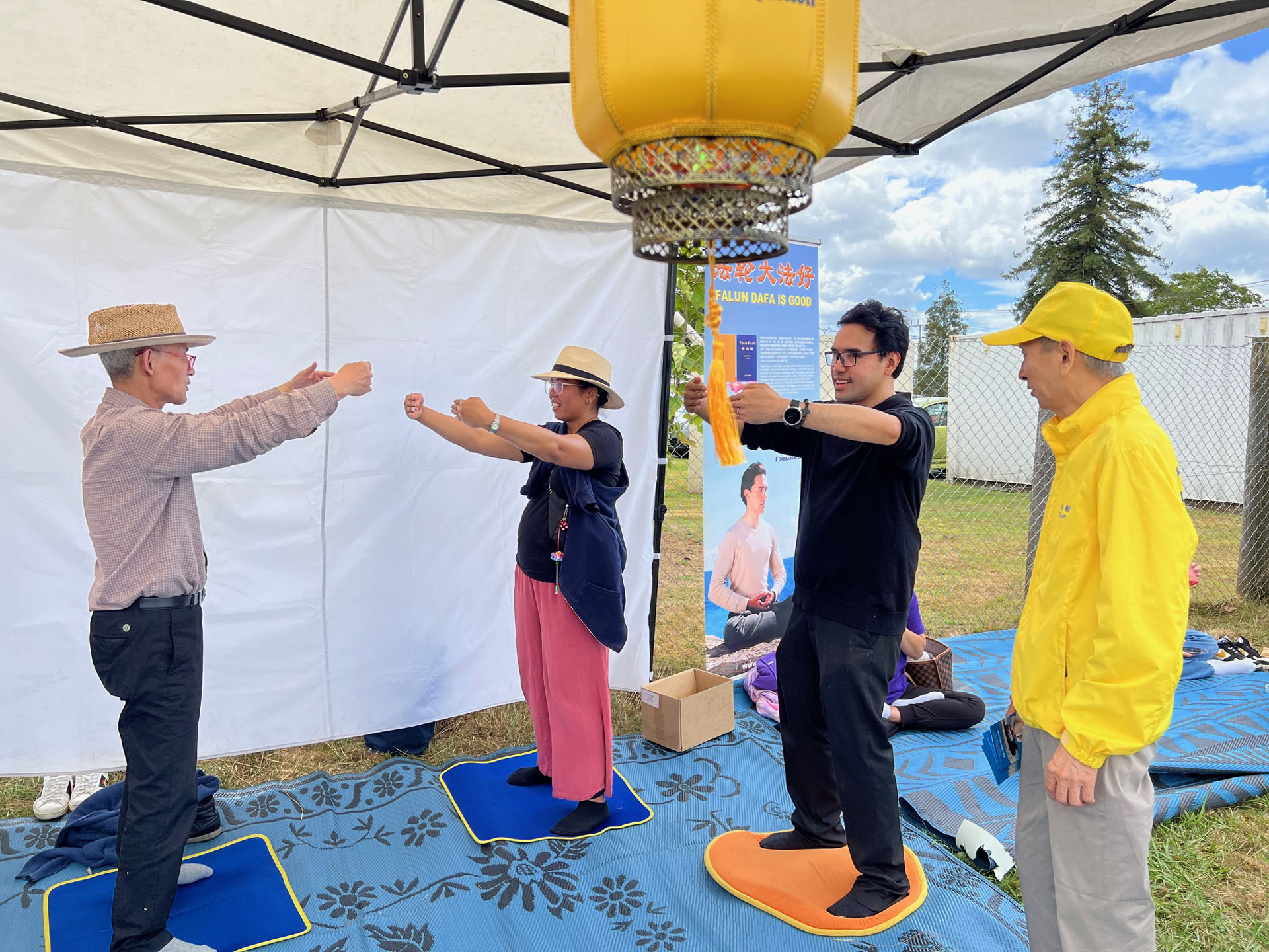 理查德更是兴致勃勃当场学炼法轮功,他说:“我学的时候感觉非常好,可以感到平静和放松,我一直在学习各种冥想。我要上网学炼法轮功,然后教我们护理中心的人学。”