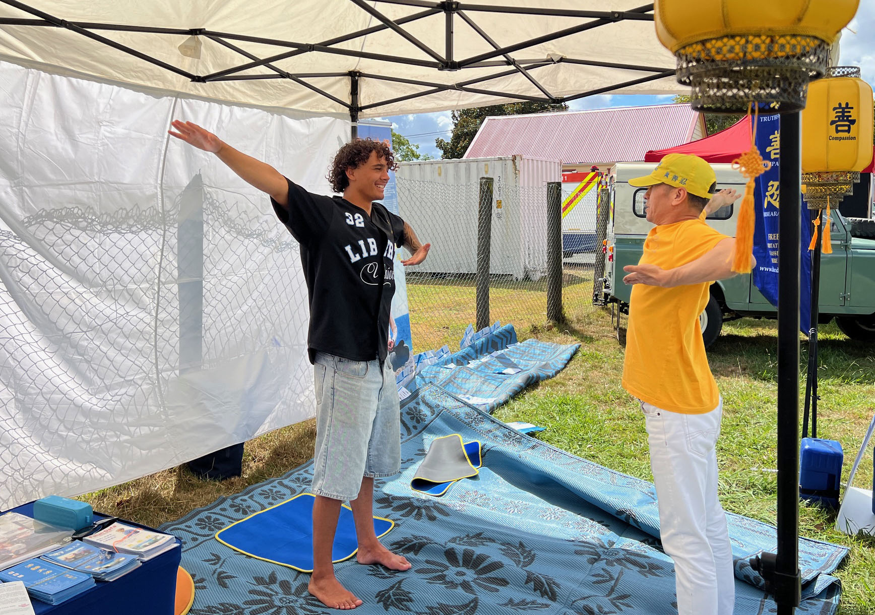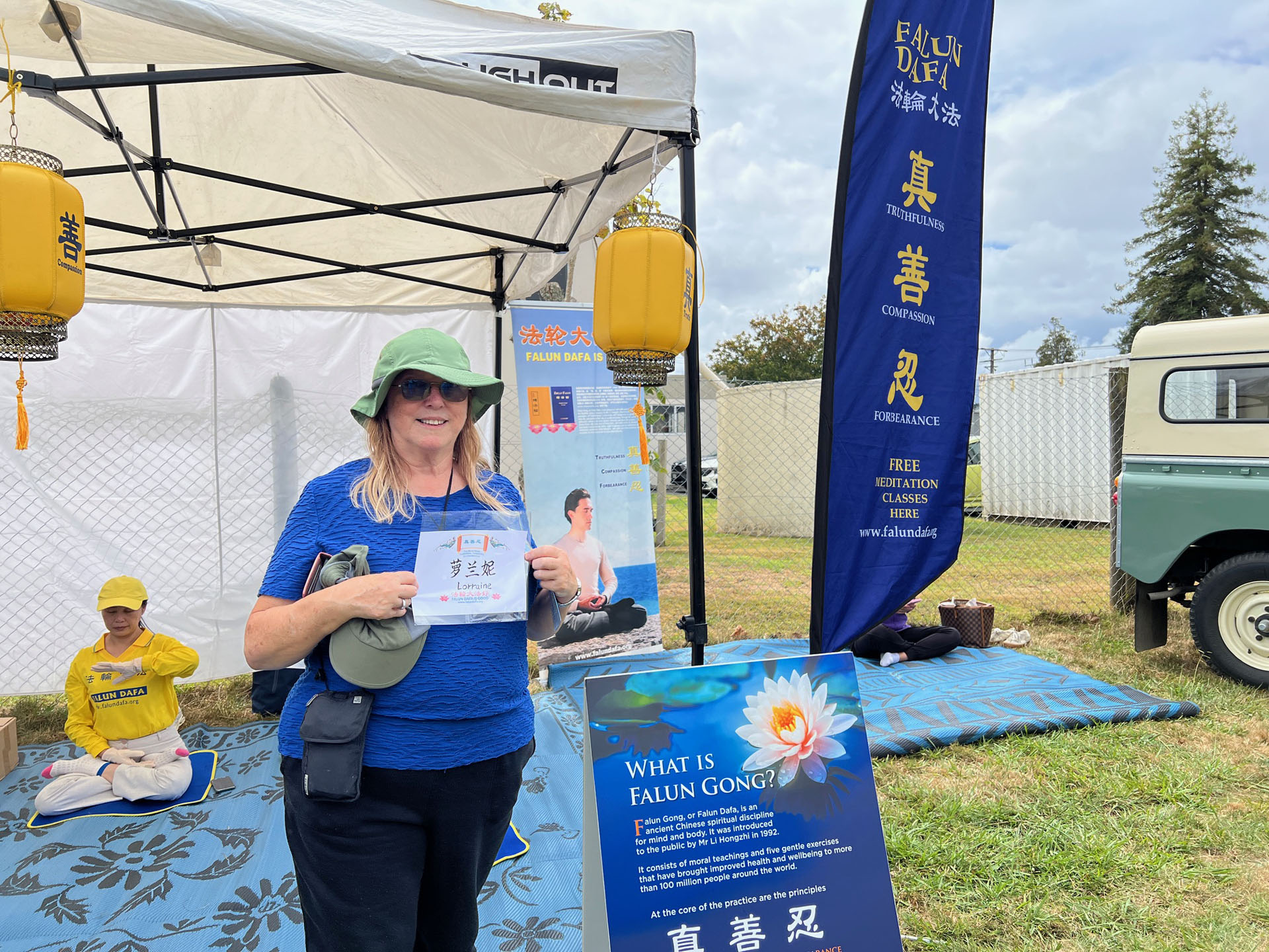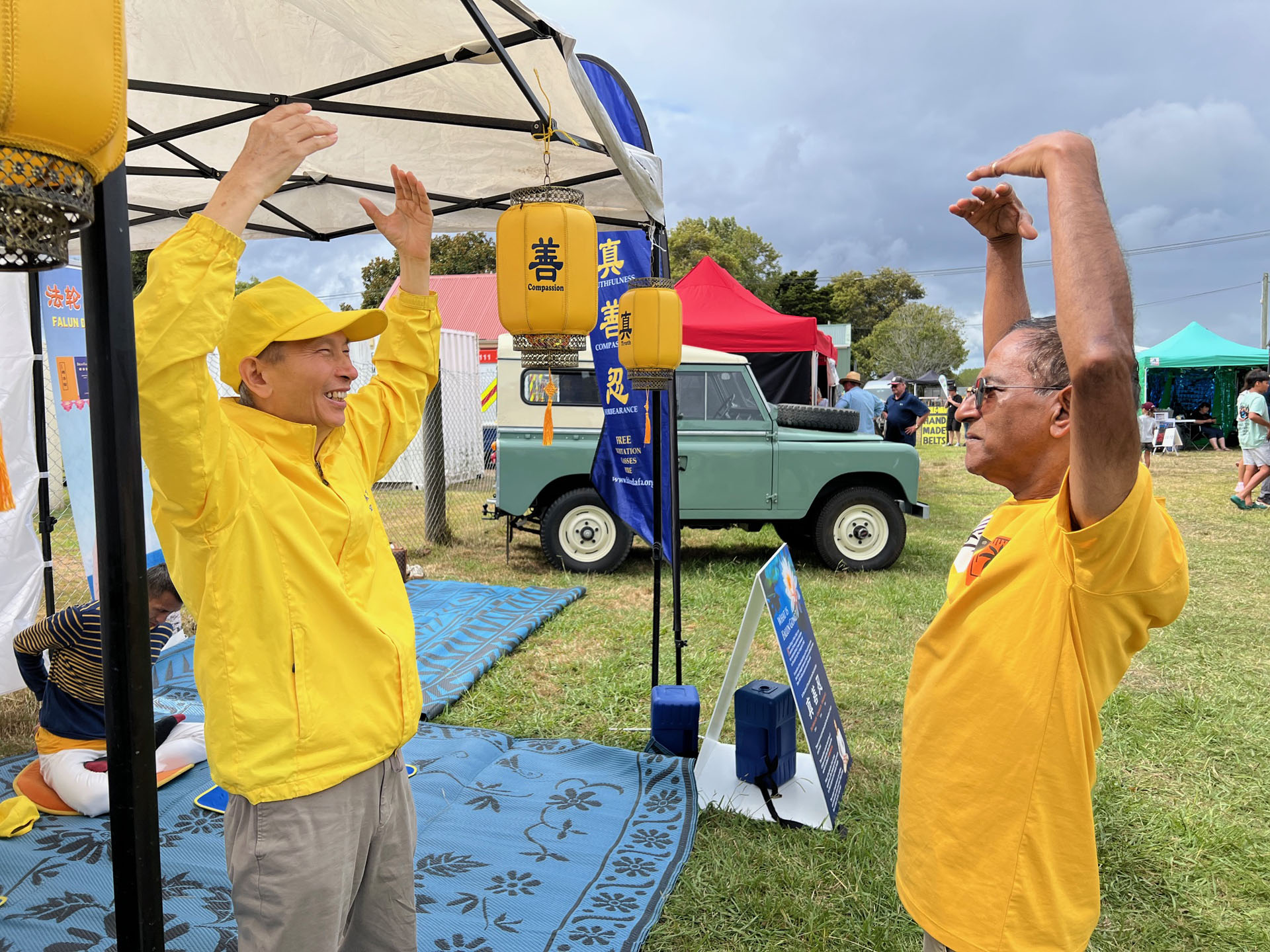 萝兰妮(Lorraine)和理查德(Richard)是新西兰Matea Trust护理中心的管理人员。罗兰妮说:“我觉得这功法很美好,你看他们坐在那里是那么平静和祥和,而我因为膝盖的问题,都不能象他们这样坐在草地上。我刚才看了他们的功法展示,他们身着金黄色服饰,看起来非常放松和平静,非常棒!我就想带我们护理中心的人员来这里,他们中有不少的人有些焦虑问题,我希望他们也可以来炼功,帮助他们平静下来,我想这会很棒。”