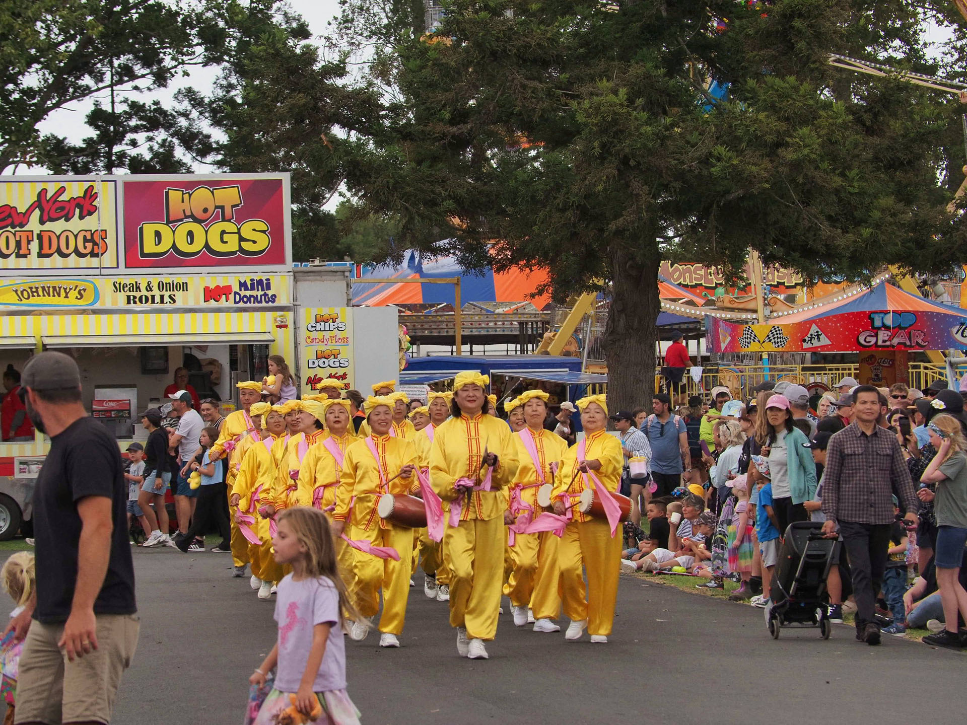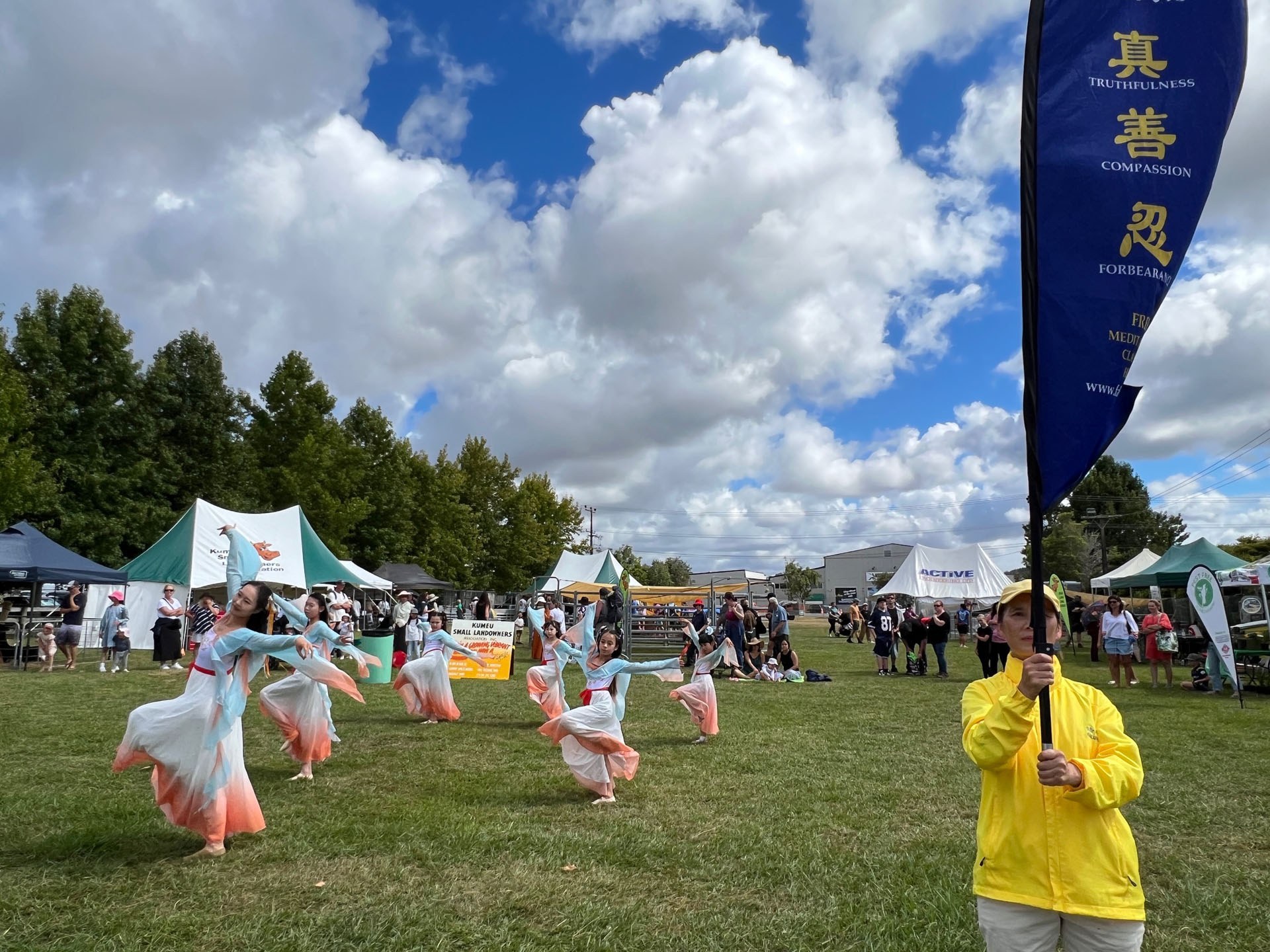 中午时分,阳光明媚,由法轮功学员组成的腰鼓队随着美妙的音乐,敲出震撼人心的鼓声;法轮功学员舞动着一条栩栩如生的龙,时而矫健游动,时而蜷着身体摇晃着可爱的脑袋;当美妙纯净的音乐缓缓响起时,法轮功学员扮演的小仙女在舞蹈老师的带领下,翩翩起舞,有观众赞扬道:孩子们的舞蹈如此纯净。