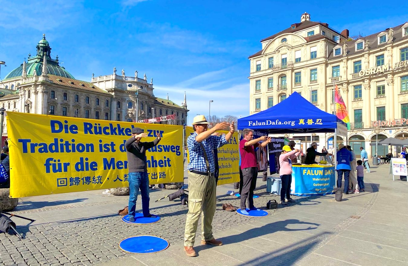 ![]() 图1:二零二五年三月二十二日,德国法轮功学员在慕尼黑卡尔斯广场(Karlsplatz)举办活动。图为法轮功学员展示功法。 |