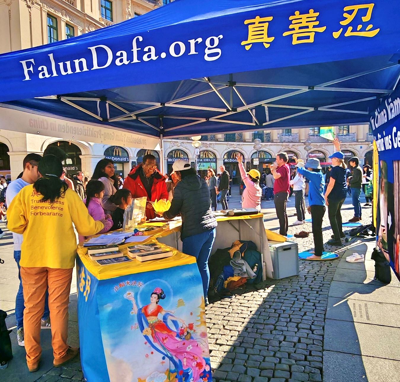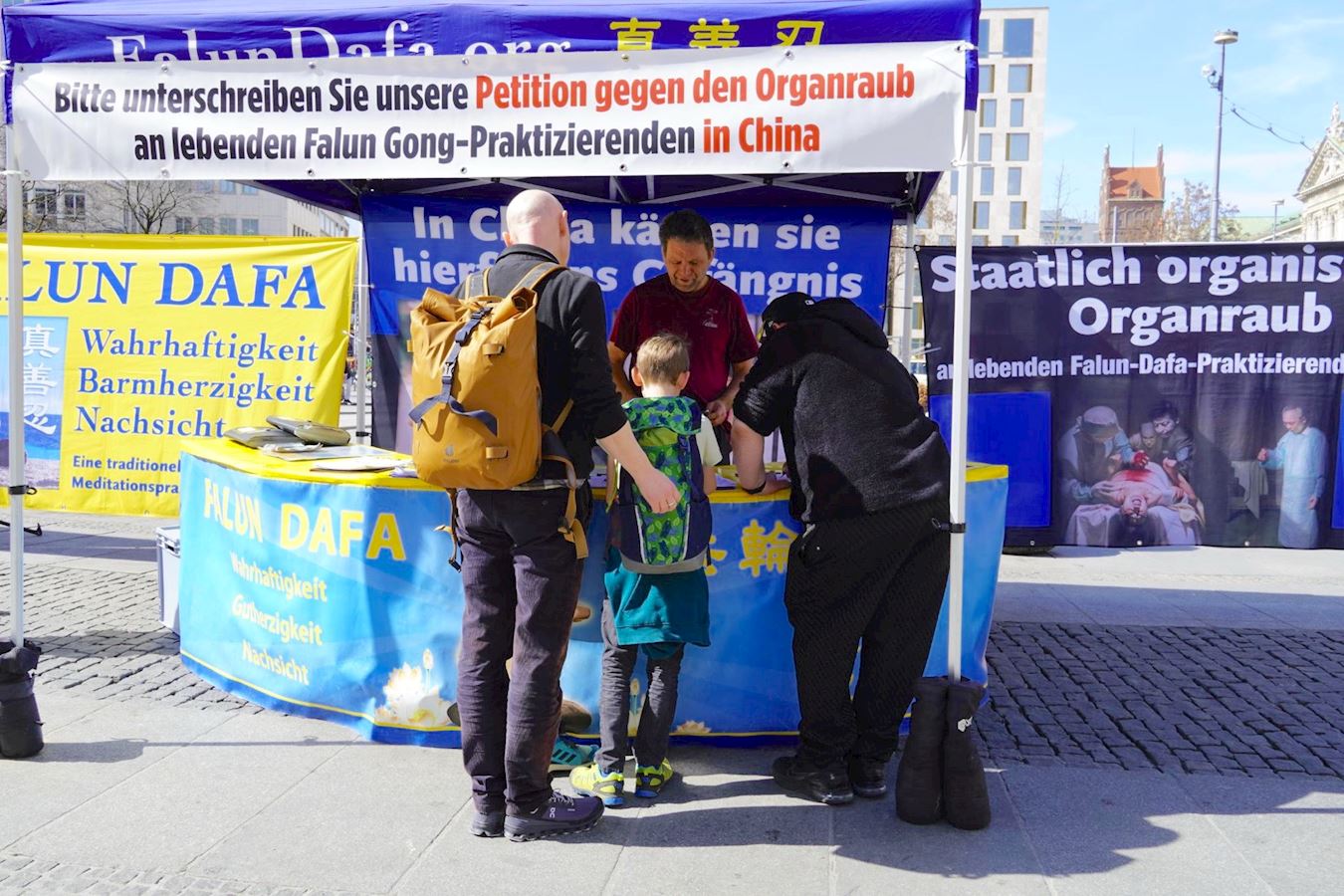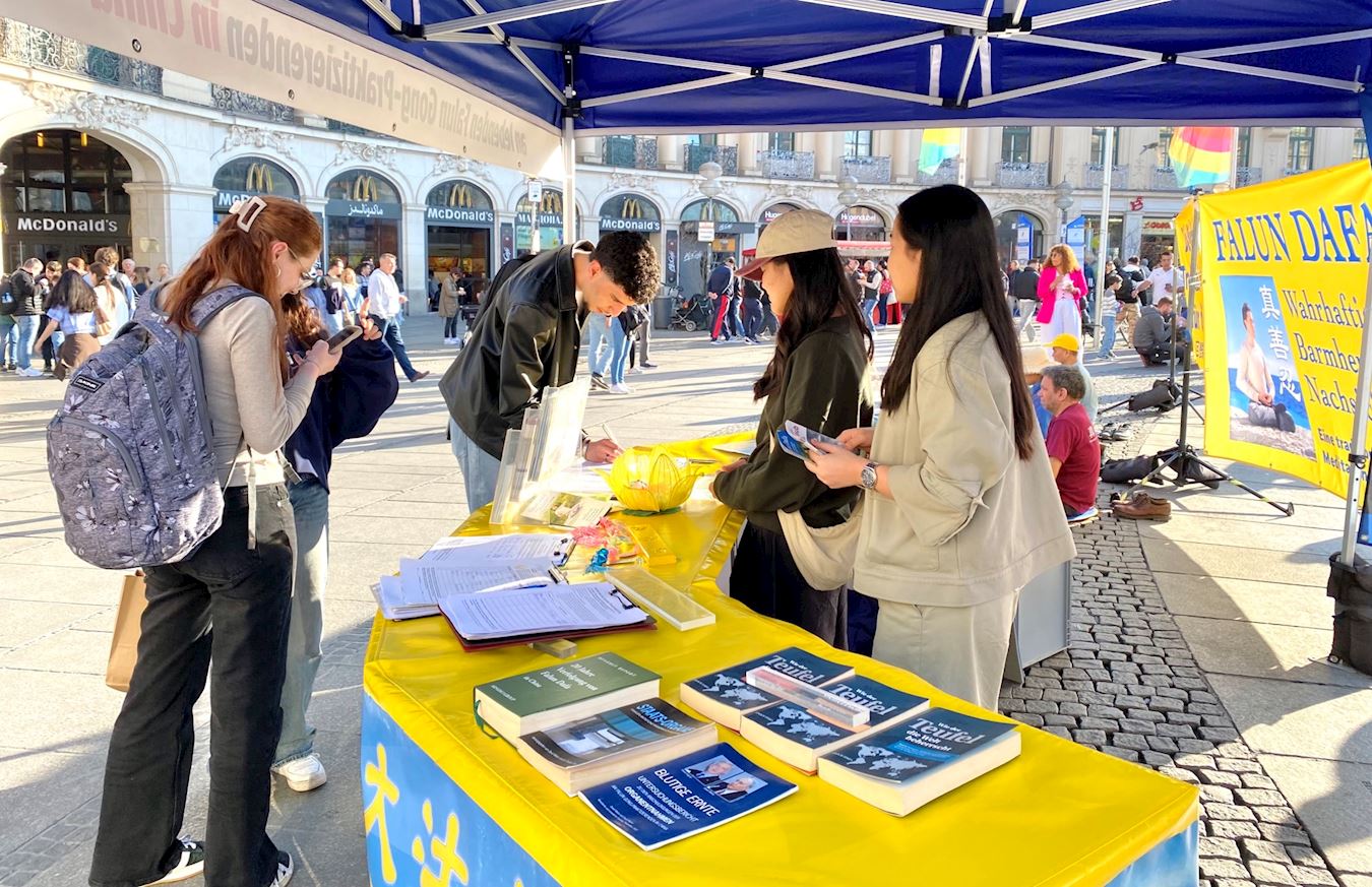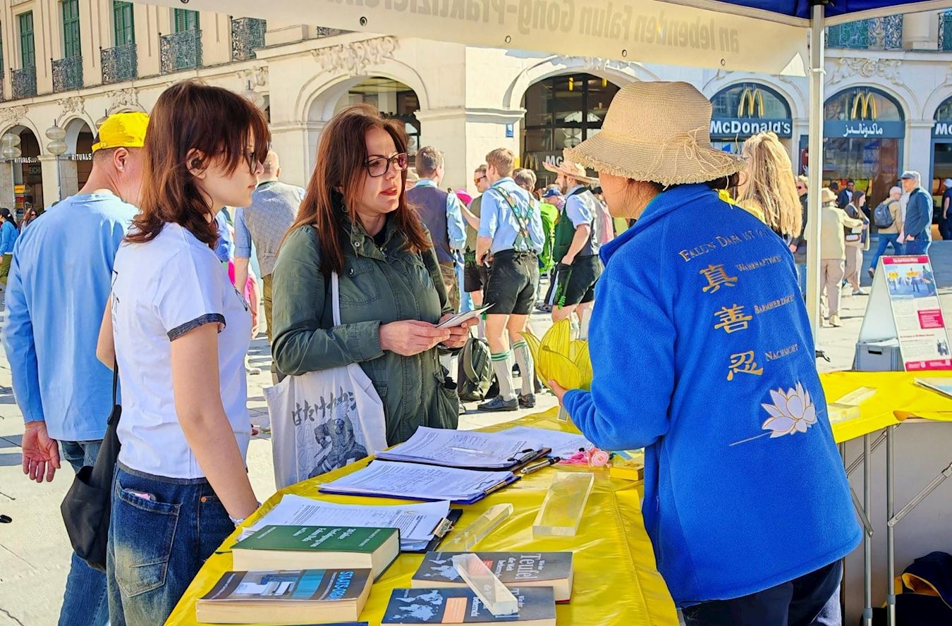 心理治疗师霍瑟尔(Steffi Hösel)和友人路过卡尔斯广场,霍瑟尔女士觉得法轮功学员活动现场氛围“散发着平静、安宁的气息”。她们与一位法轮功学员交谈起来,之后,她们一起签名制止中共活摘法轮功学员器官。
