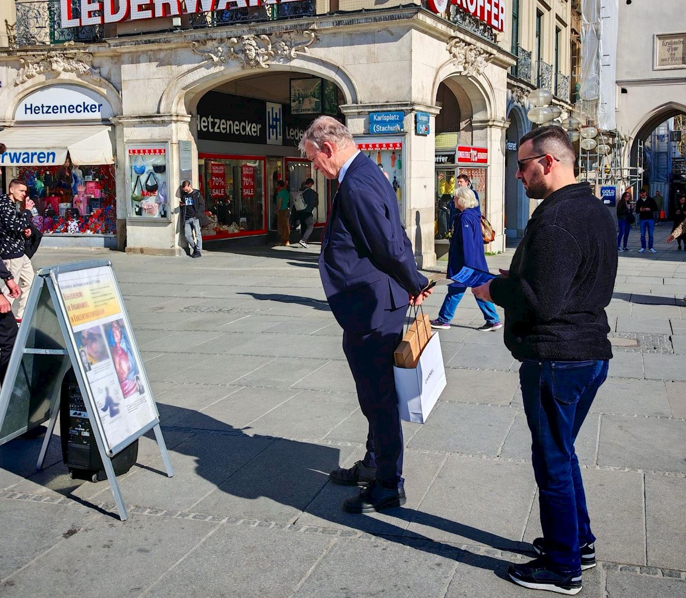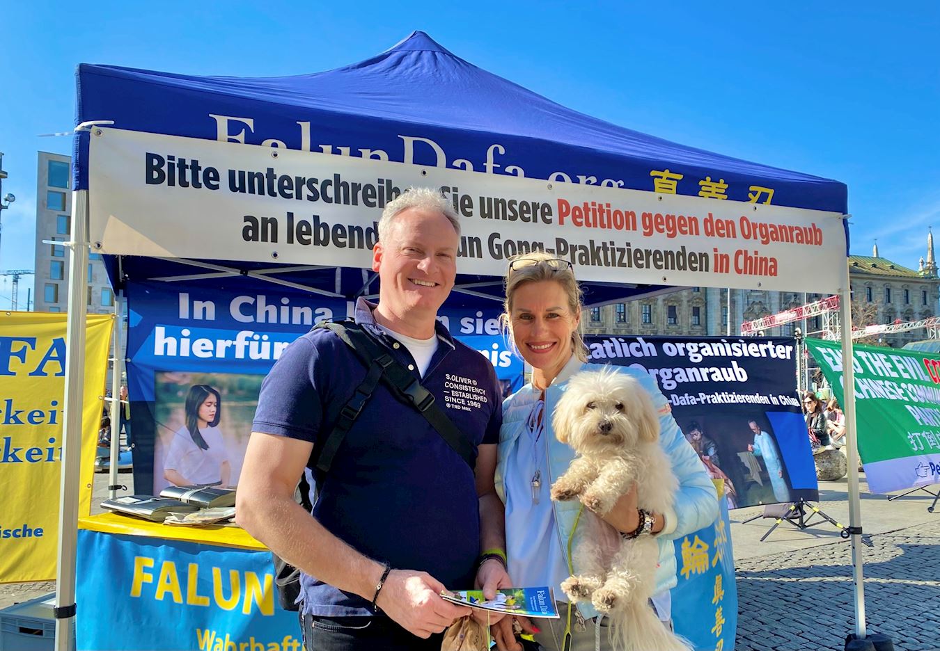 来自德国的永久化妆工作室老板苏珊娜(Susanne)和朋友、来自奥地利从事能源供应的翁格尔先生(Christian Unger),双双签名声援法轮功学员反迫害。