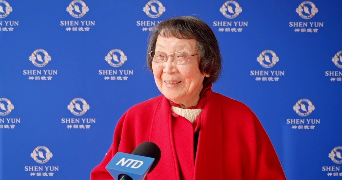 ![]() 图2:二零二五年四月三日,中国著名文学家、民国大师梁实秋的三女儿梁文蔷,在西雅图市观赏了神韵演出。(新唐人电视台) |