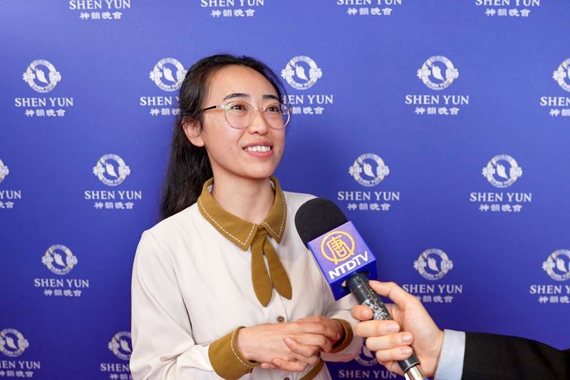 “我记得四个字:随我下世。我觉得是一种力量在向外抒发的过程,是在座每个人正在吸收的过程。” 刘谚哲女士观看神韵后说。
