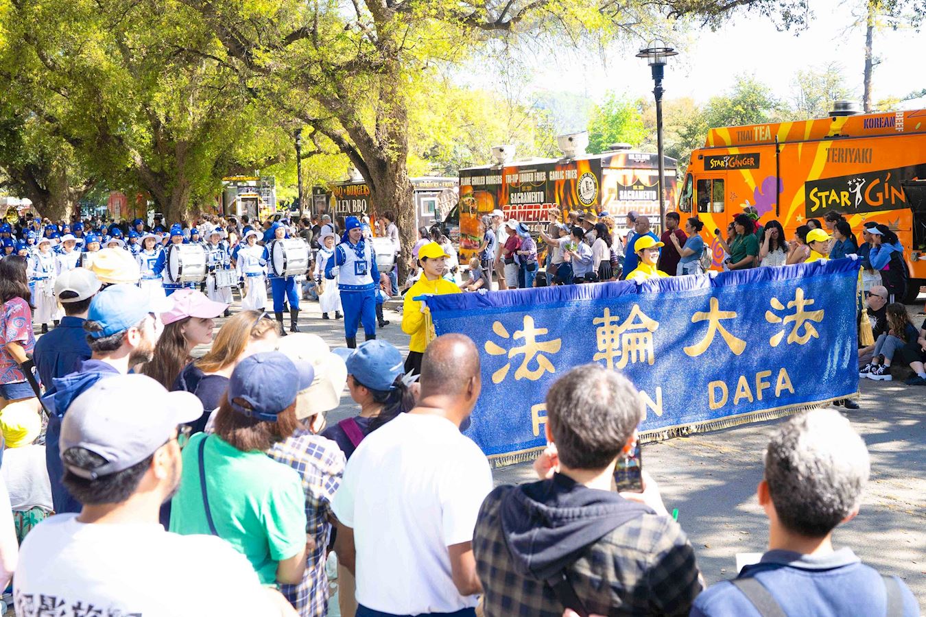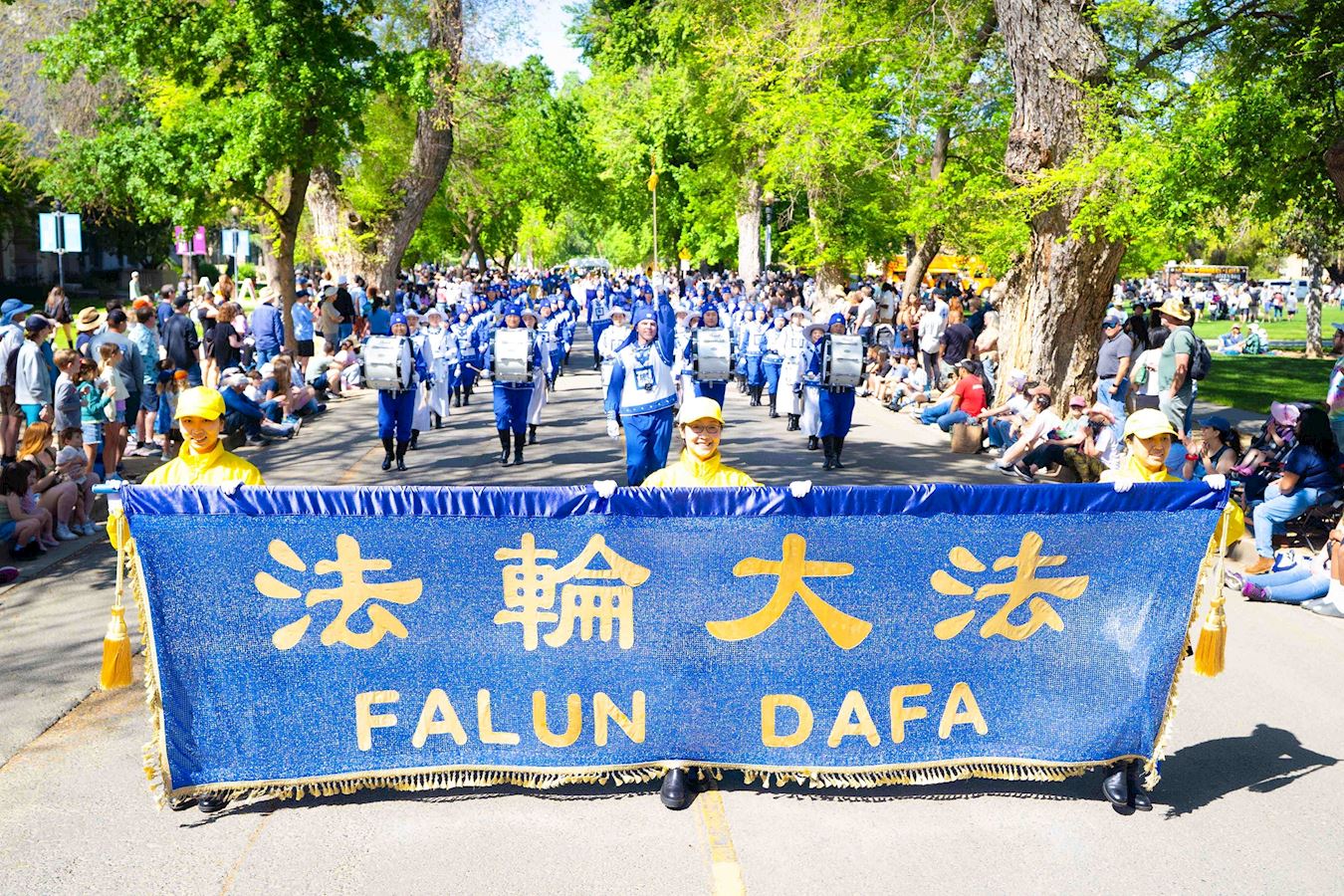 “野餐节”游行于当天上午十点半开始,身着蓝白色古装的天国乐团为观众演奏了《法轮大法好》、《凯旋》和《神圣的歌》等乐曲,受到观众的欢迎。他们说,法轮功天国乐团演奏的乐曲震撼人心,令人赞赏。