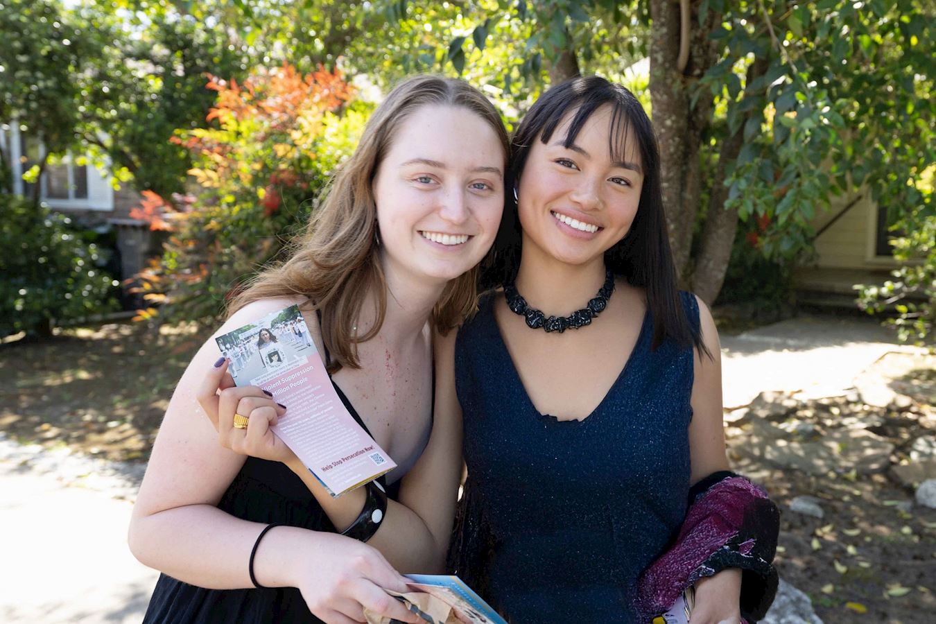 娜塔莉(Natalie)和朋友维罗妮卡(Veronika)看到法轮功学员的队伍,非常高兴。娜塔莉自豪地说,“我是中国人,我百分之百的支持你们。我是来自东南亚的广东人,我喜欢真、善、忍。”