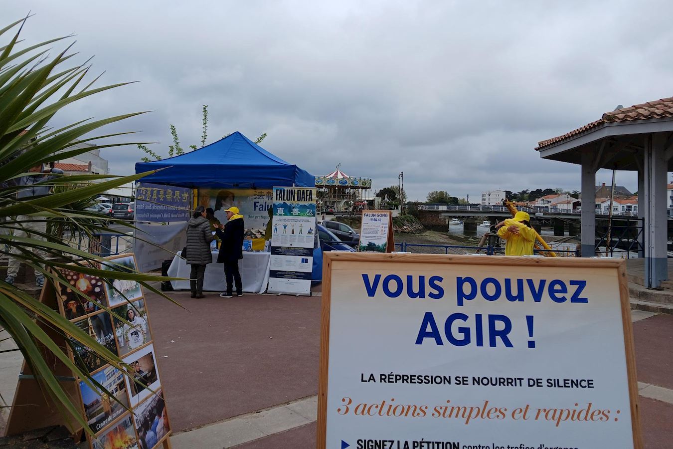 '图1:二零二五年四月十二日星期六,法轮功学员在法国西部海滨城市圣吉勒-克鲁瓦德维(Saint-Gilles-Croix-de-Vie)举办了法轮功信息日活动。'