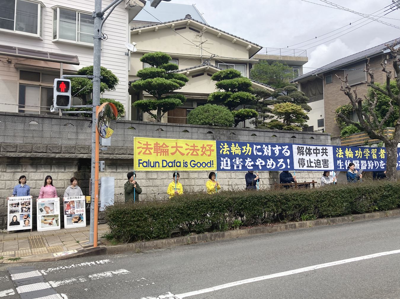 ![]() 图1:二零二五年四月二十日上午和下午,熊本地区的法轮功学员分别在福冈和长崎的中领馆前举行集会 |