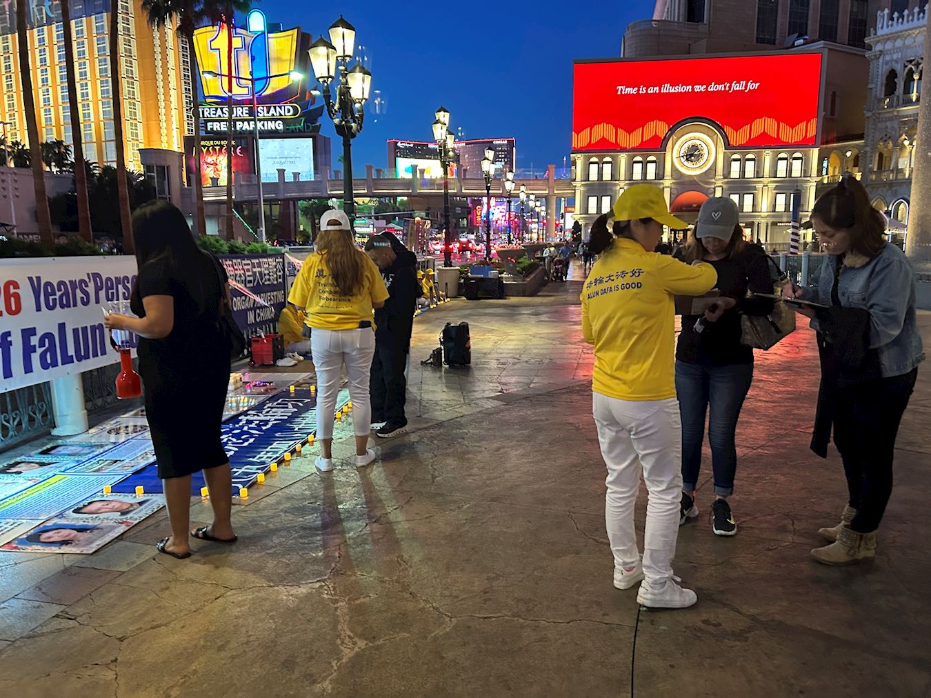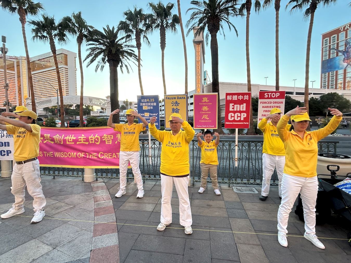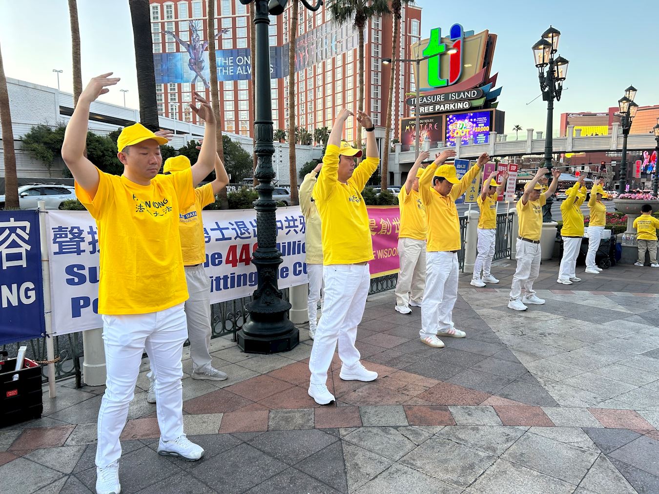 【明慧网二零二五年四月二十二日】二零二五年四月十九日,为纪念“四·二五”和平上访二十六周年,美国拉斯维加斯部分法轮功学员在世界著名的拉斯维加斯赌场大道举办集体炼功、集会等系列活动,谴责中共对法轮功群体的残酷迫害,悼念被中共迫害致死的法轮功学员。