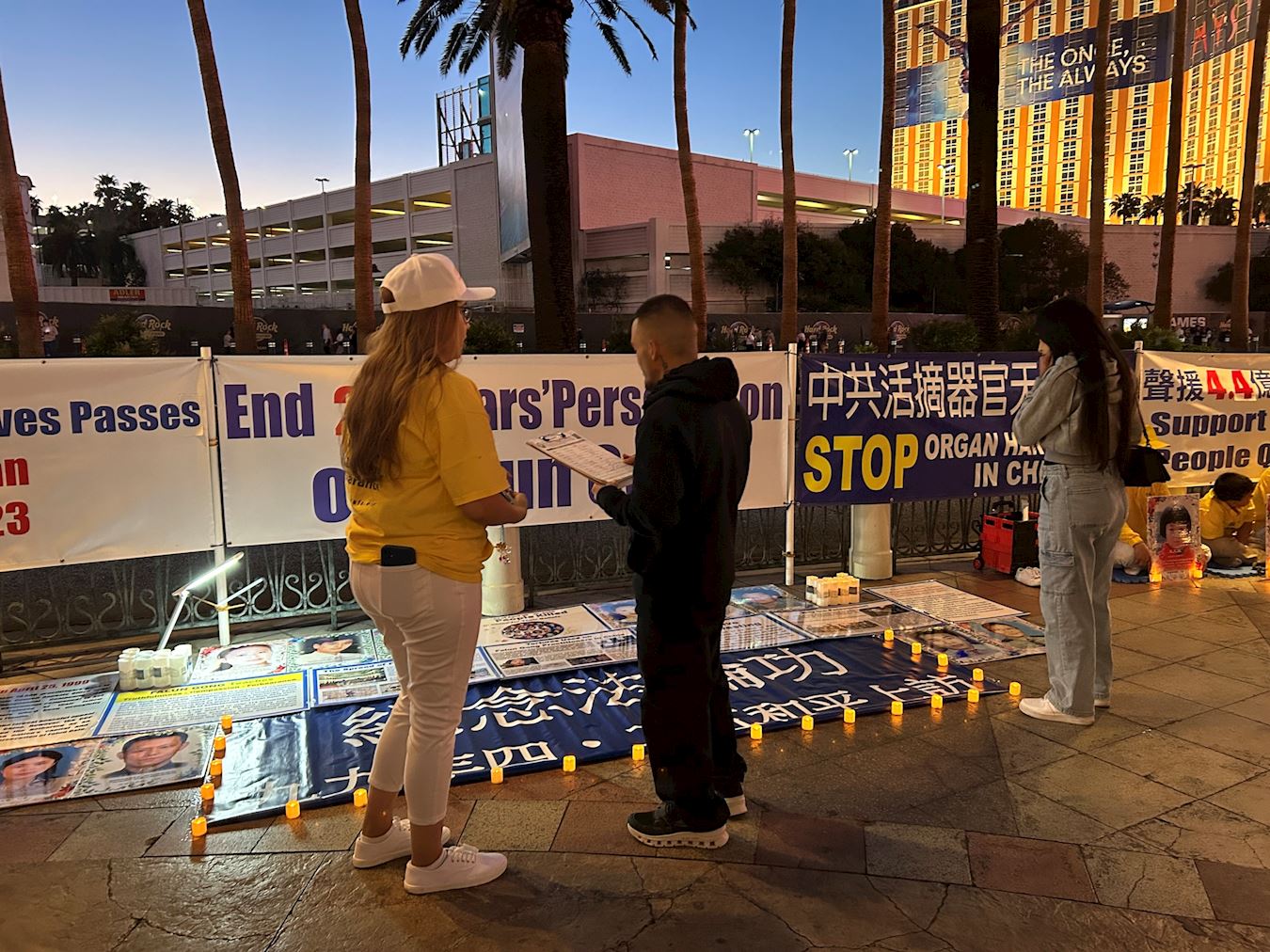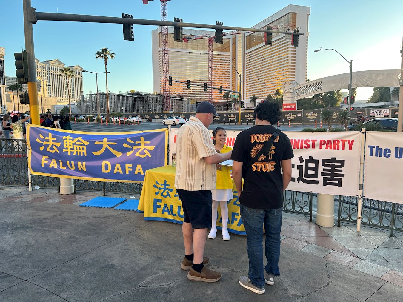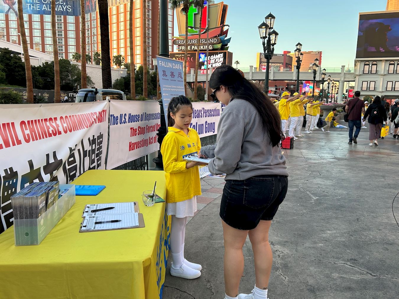 【明慧网二零二五年四月二十二日】二零二五年四月十九日,为纪念“四·二五”和平上访二十六周年,美国拉斯维加斯部分法轮功学员在世界著名的拉斯维加斯赌场大道举办集体炼功、集会等系列活动,谴责中共对法轮功群体的残酷迫害,悼念被中共迫害致死的法轮功学员。