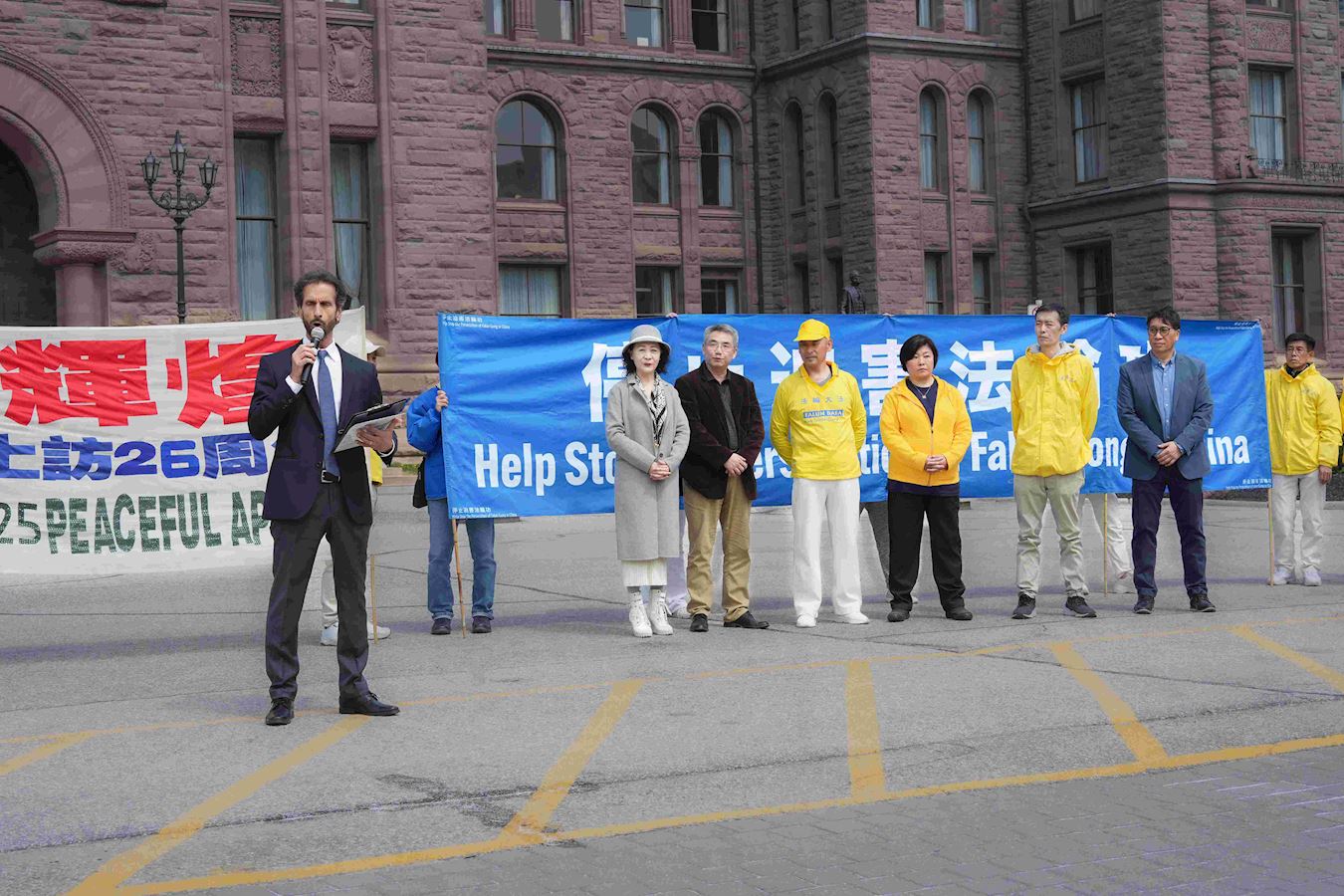 他还表示:“我觉得四•二五处在一个很关键的历史节点,就象是历史给的一个选择的机会,但中共却选择对抗真、善、忍普世价值,公然摧毁人的道义良知,迫害信仰真善忍的法轮功学员,甚至盗取他们的器官进行贩卖。”“所以今天我们在这里纪念四•二五和平上访二十六周年,也是希望能够有更多的人,尤其是中国人,能够不被中共洗脑宣传迷惑,了解真相,认同真善忍宇宙法理。也祝愿大家都能够拥有一个美好的未来。”
