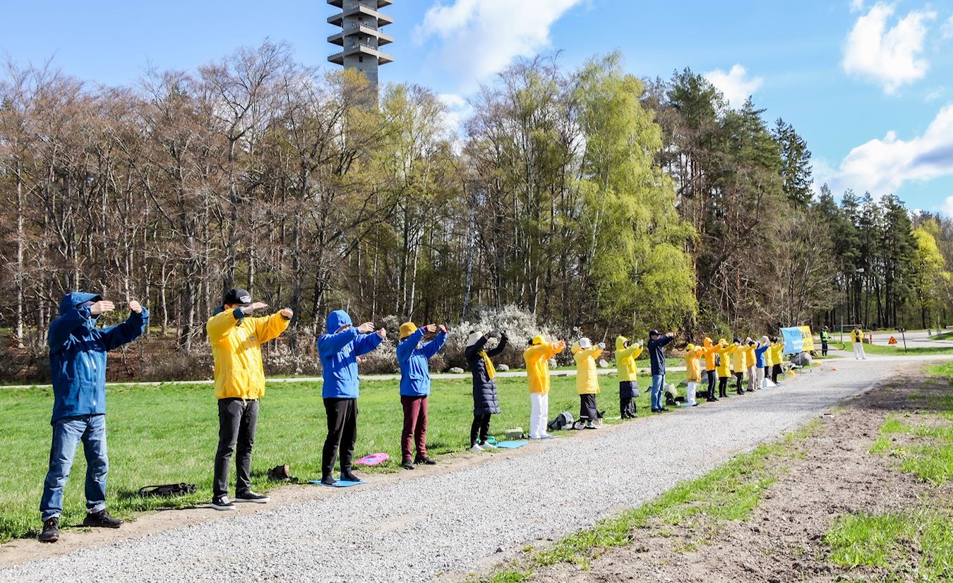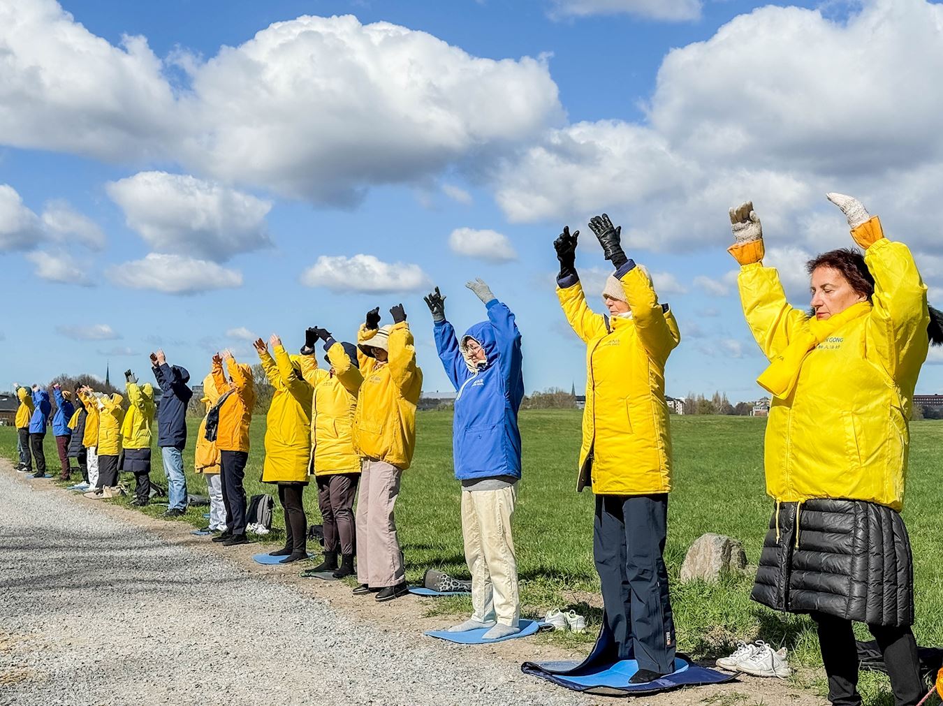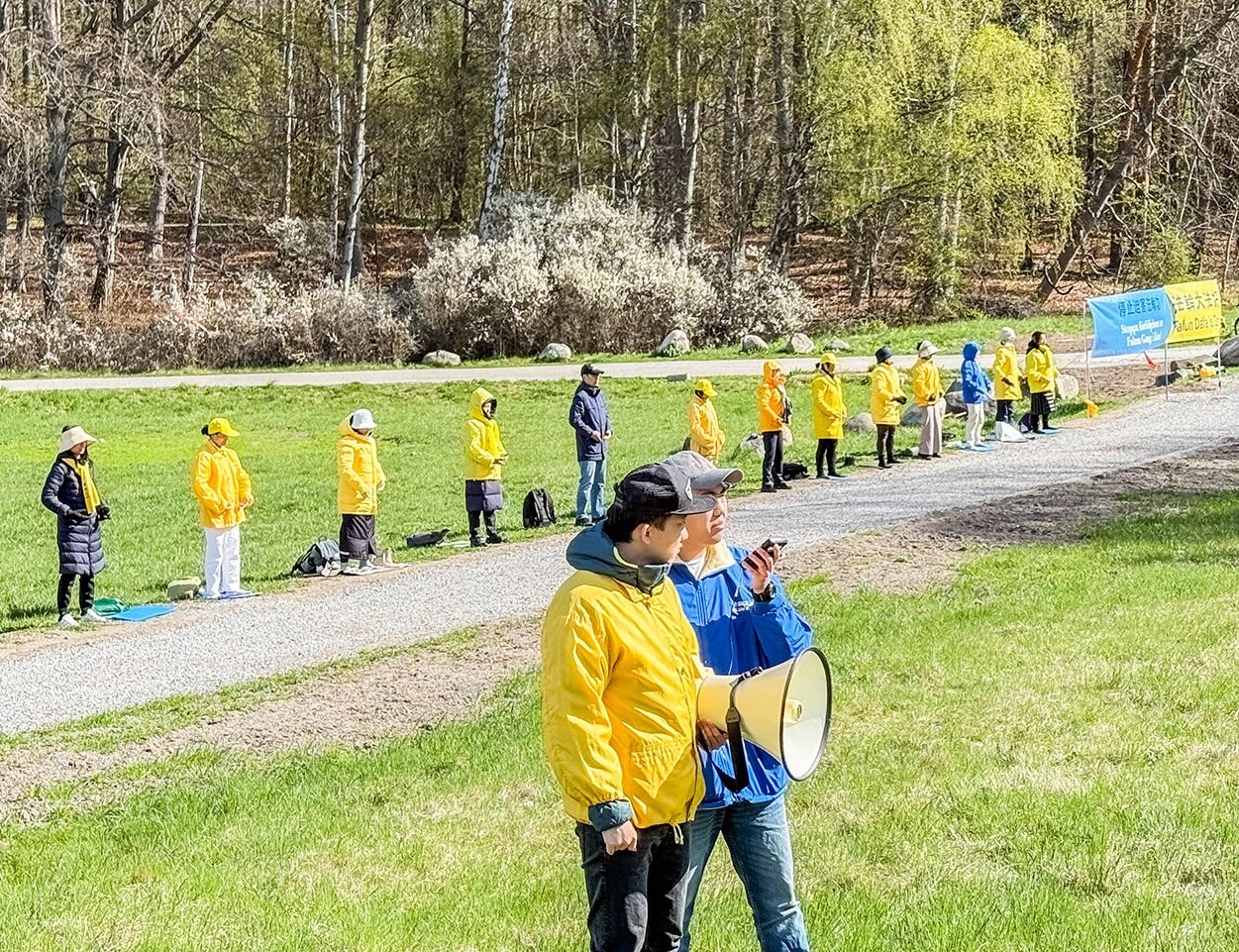 【明慧网二零二五年四月二十七日】(明慧记者何平斯德哥尔摩报道)二零二五年四月二十六日上午,为纪念四·二五法轮功学员和平上访二十六周年,瑞典部分法轮功学员在斯德哥尔摩中使馆前举行了集体炼功、讲真相活动,并呼吁瑞典政府及各界民众继续关注中共对法轮功的人权迫害、帮助制止迫害。