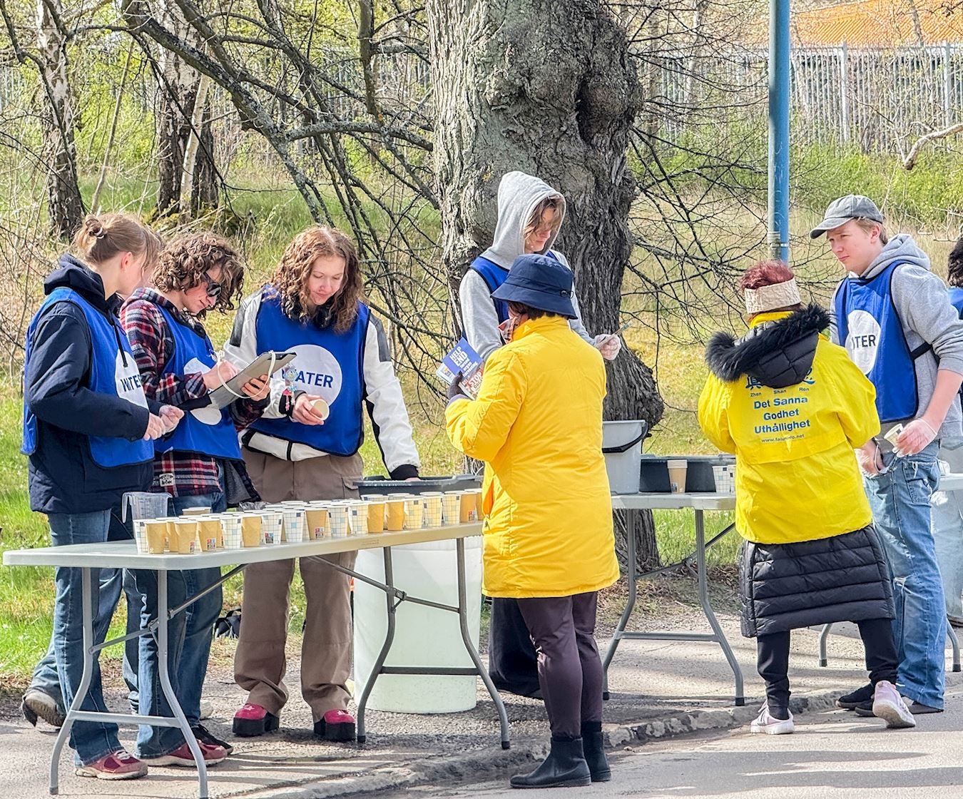 图7:法轮功学员在活动现场向斯德哥尔摩市民讲述法轮功真相。
