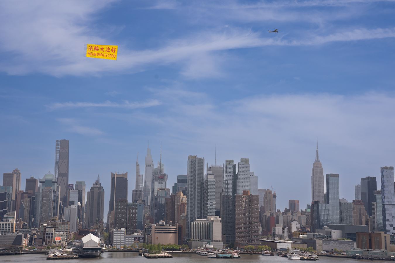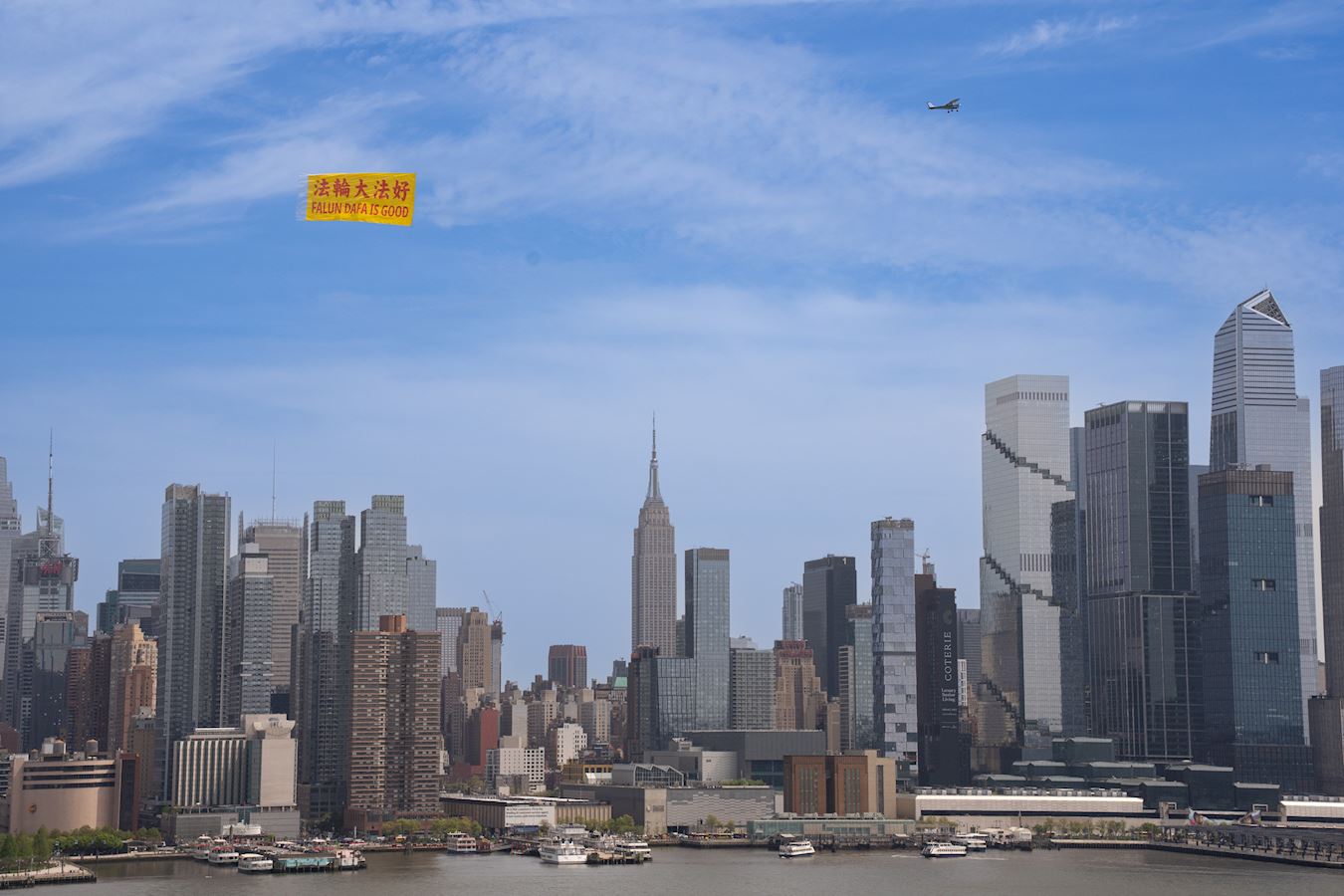 视频:“法轮大法好”(FALUN DAFA IS GOOD)在曼哈顿的上空飘扬。