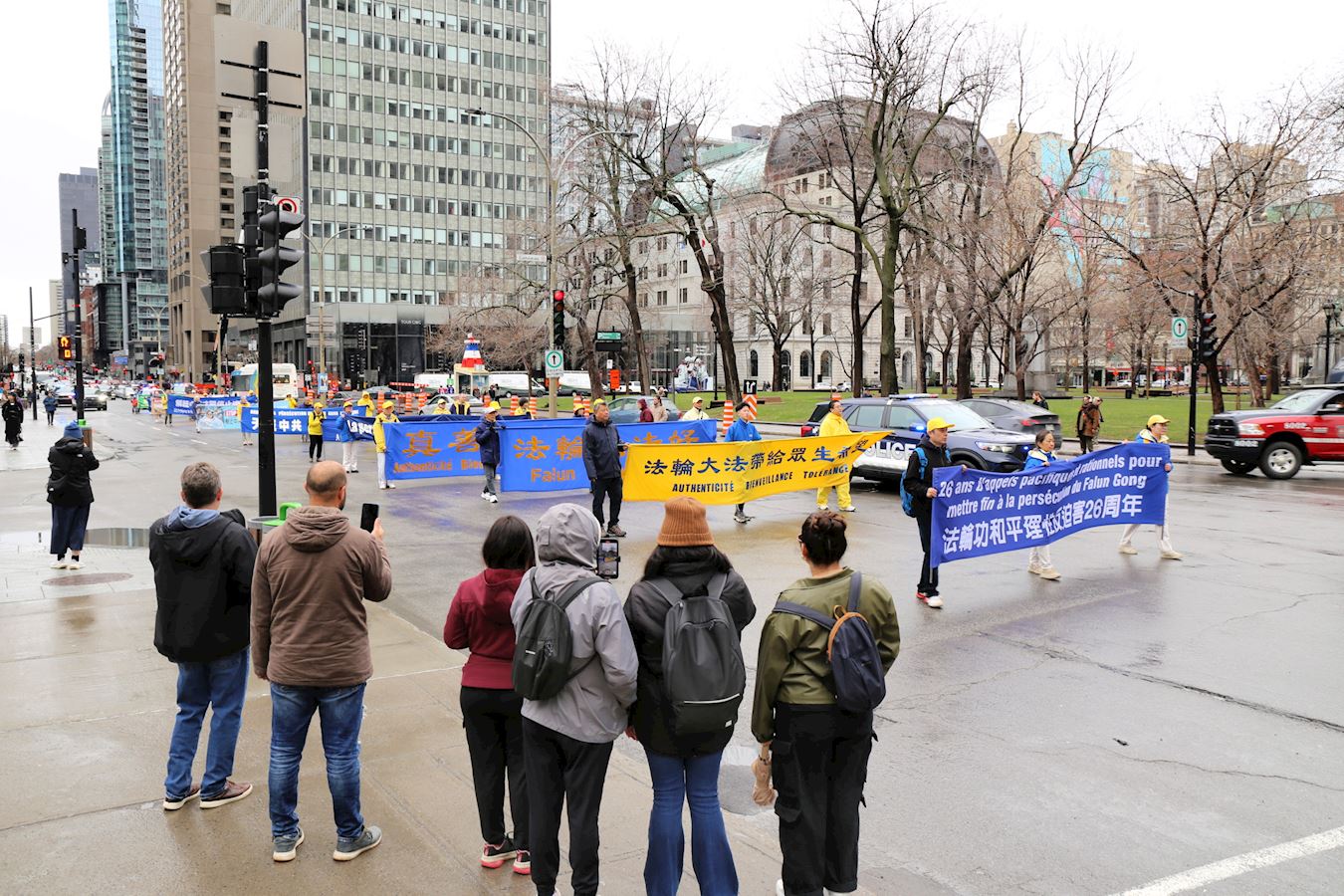 ![]() 图1~4:二零二五年四月二十七日下午,加拿大魁北克省部份法轮功(法轮大法)学员在蒙特利尔举行游行,纪念法轮功学员和平理性反迫害二十六周年。 |