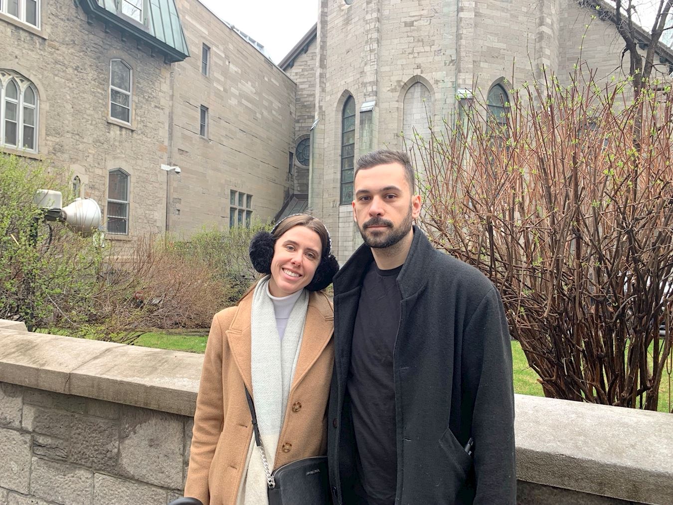 ![]() 图6:多伦多游客罗贝塔(Roberta)和维克多(Victor)支持法轮功学员反迫害。 |