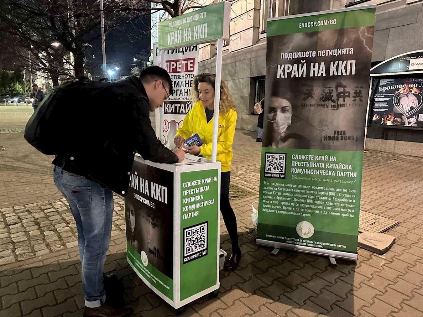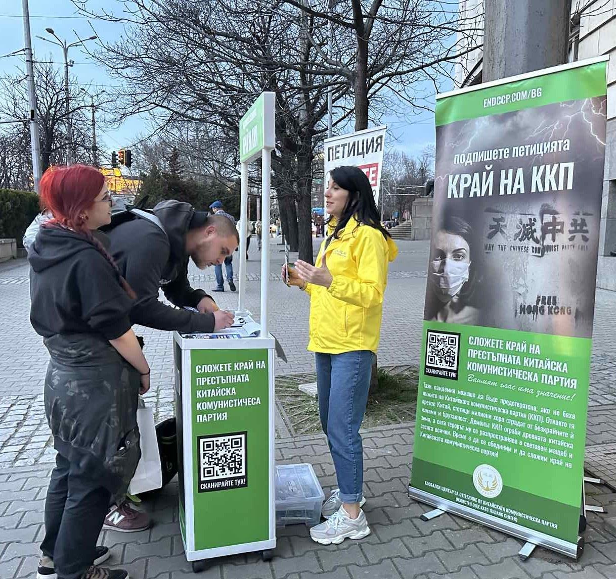 讲真相活动期间,保加利亚首都索菲亚的居民和游客在《国际人权请愿书》上签名,谴责中共侵犯人权的暴行,包括对法轮大法的迫害