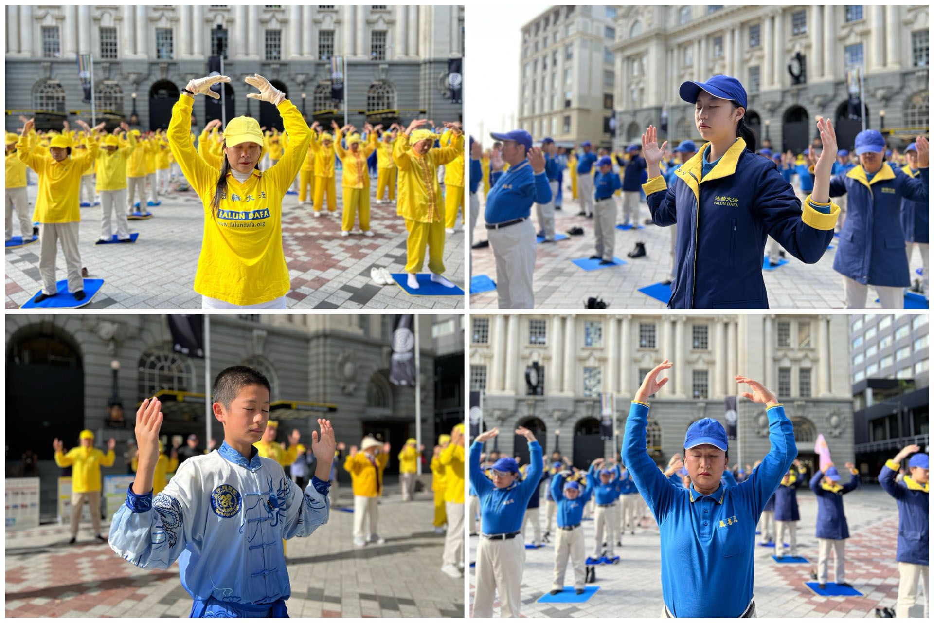 ![]() 图2~4:二零二五年五月十日,法轮功学员在新西兰奥克兰市中心的商业湾(Commercial Bay)大炼功。 |