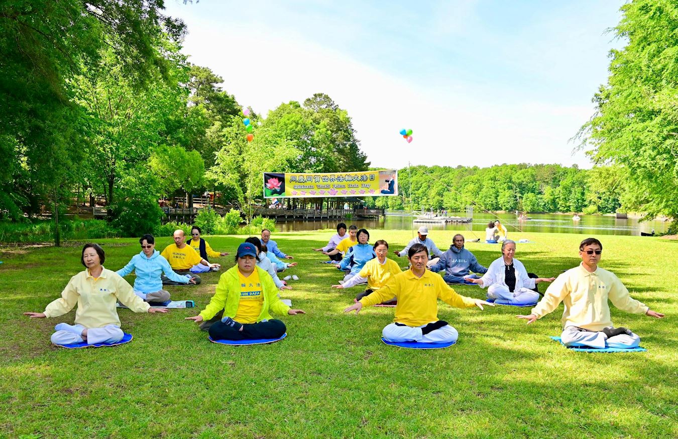![]() 图1:二零二五年五月十日,北卡部分学员在凯瑞市的Bond Park庆祝世界法轮大法日及法轮大法洪传三十三周年,并恭祝李洪志大师生日快乐 |