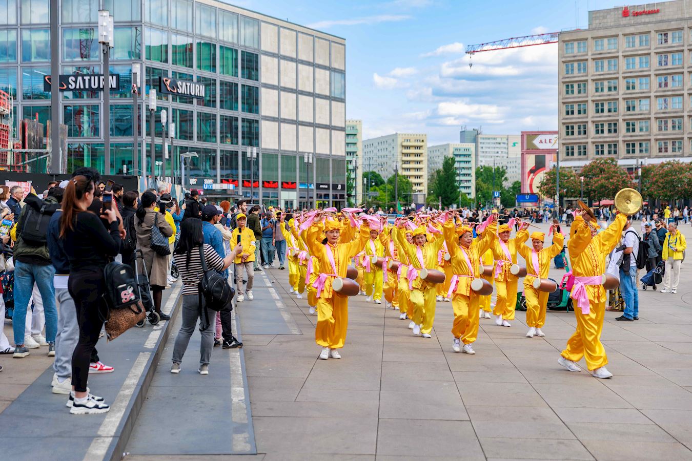 二零二五年五月九日及十日,法轮功学员的游行队伍在布莱登堡门前的菩提树下大街(Unter den Linden),被誉为柏林两大购物街的库达姆大街(Kurfürstendamm)和施洛斯大街(Schloßstrasse)等繁华街区行进,一路上由警车开道护航,确保畅行无阻。很多路人也如老妈妈一样,因此有机会听闻法轮大法,感受到真善忍的美好。他们打算要与更多人分享。