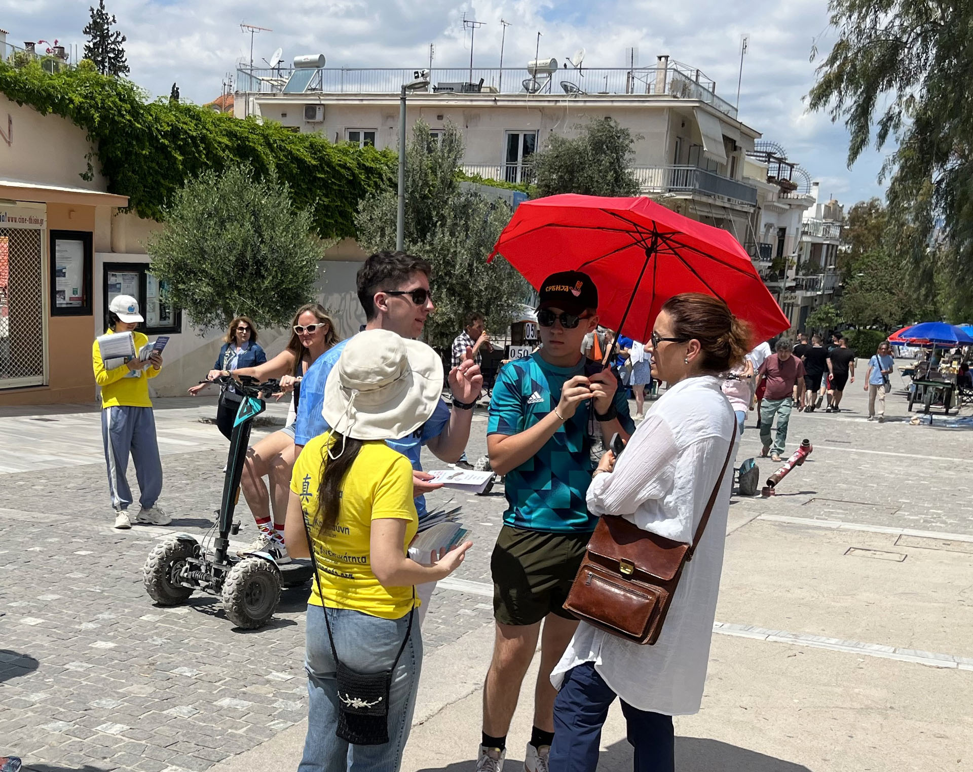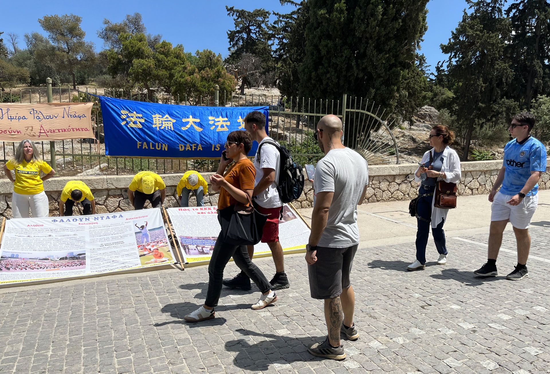 ![]() 图1~4: 希腊部分法轮功学员聚集在蒂西奥演示功法,并向过往的路人介绍法轮大法的美好。 |