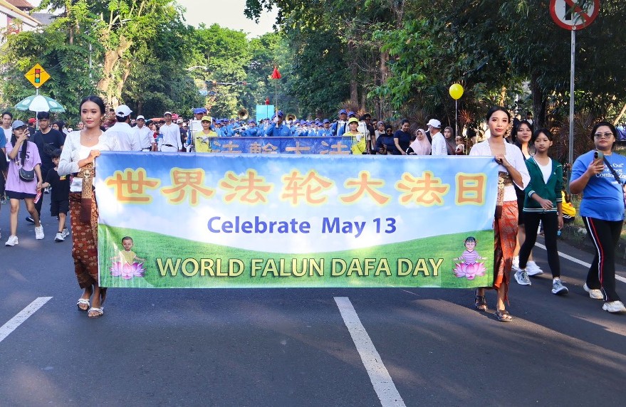 为了庆祝这一殊胜的日子,来自印度尼西亚各地的部分法轮功学员于五月十一日(星期日)齐聚巴利岛登巴萨市,在雷侬广场举行了盛大的游行活动。这次活动不仅是庆祝这一历史性的日子,也提供了一个向公众传播法轮大法美好和真、善、忍普世价值的机会。