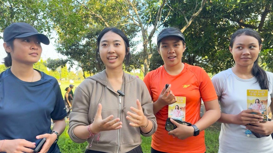 与此同时,米拉、迪玛及她们的两位朋友看到法轮大法学员在游行队伍中,她们非常激动并认真聆听学员介绍功法的内容。其中一位表示:“我被天国乐团深深吸引,还有他们充满激情的演奏,让我深受启发。团员中不仅有年轻人,还有年长者,法轮大法真是令人敬佩!”