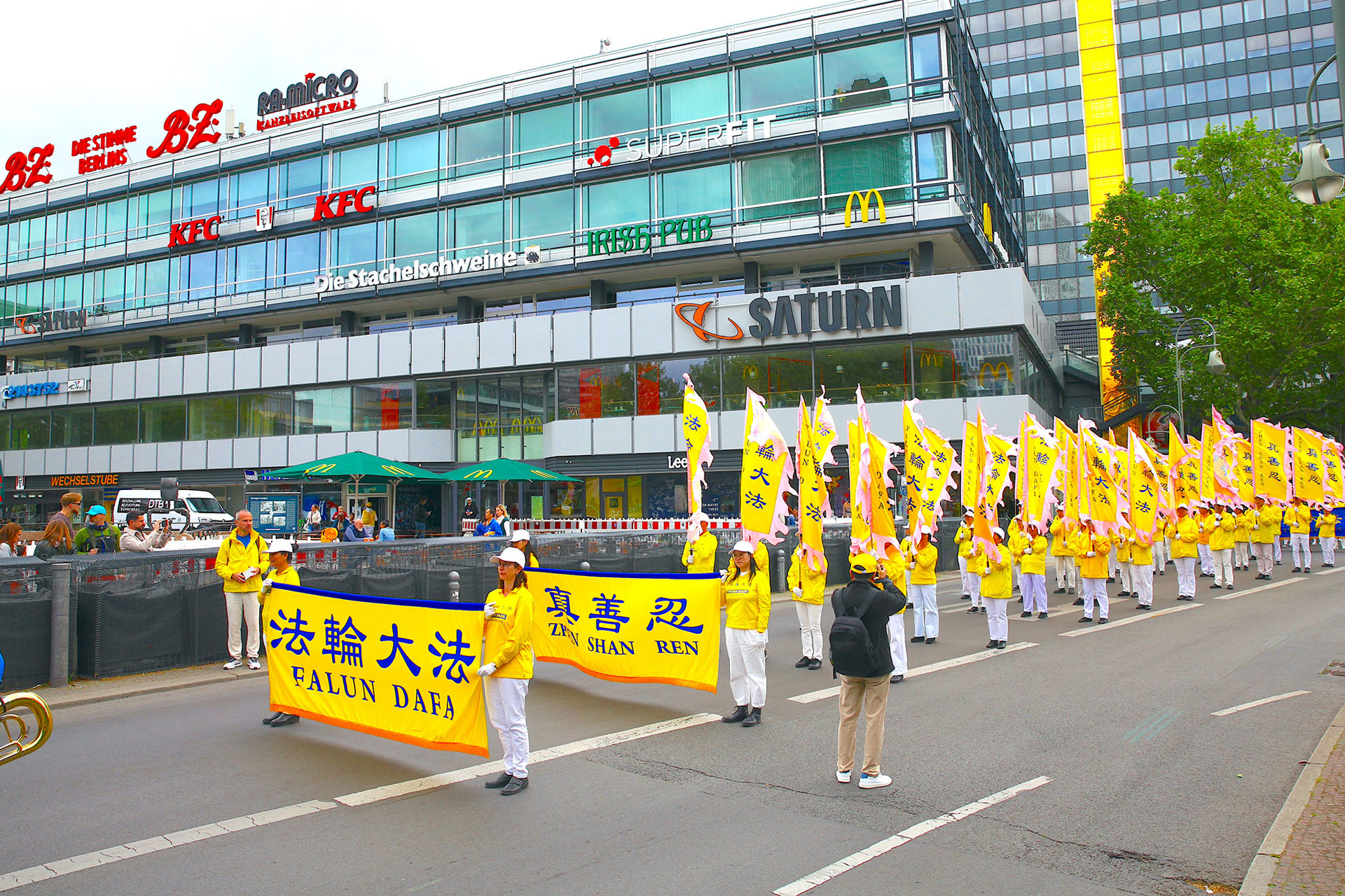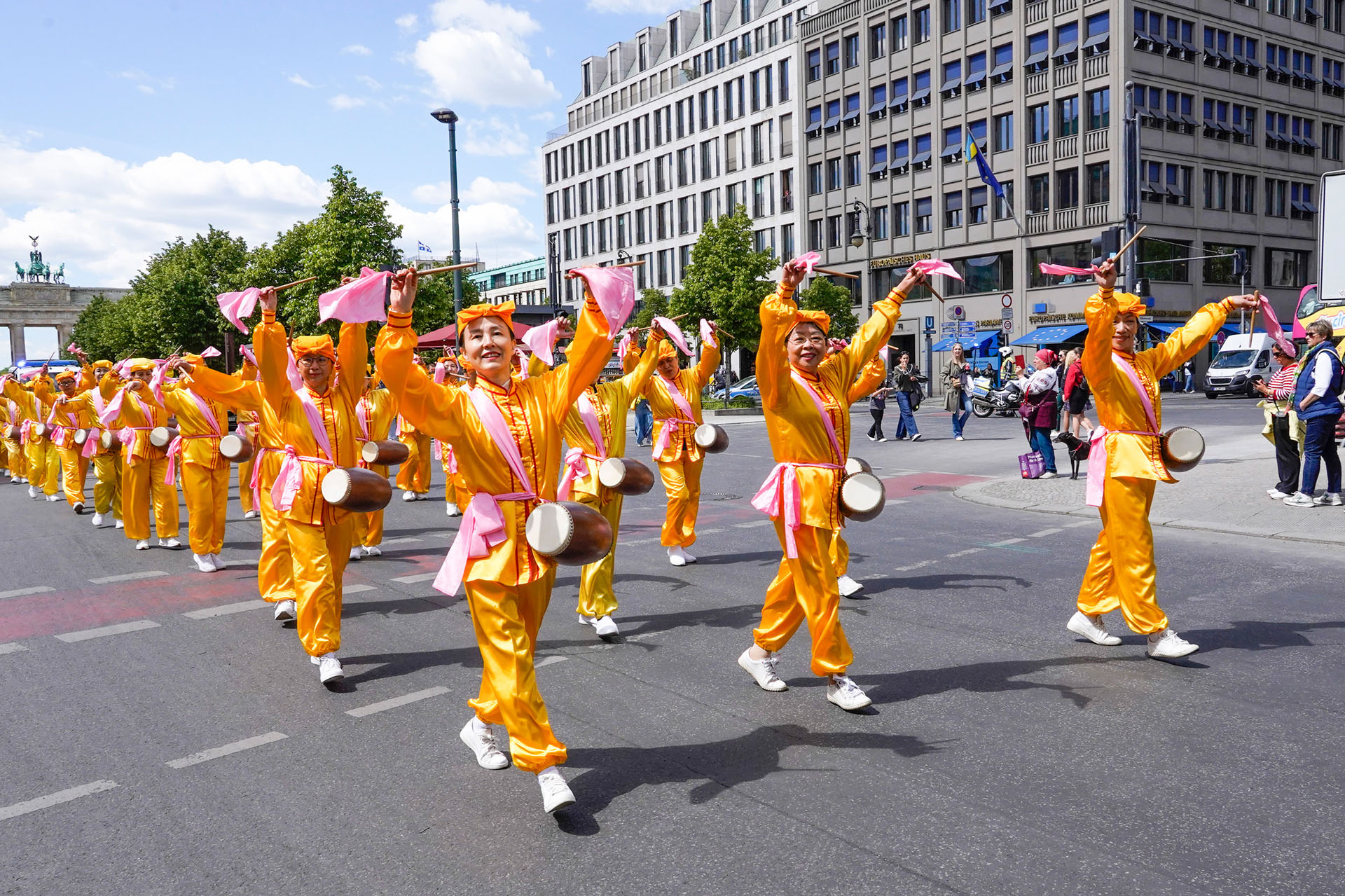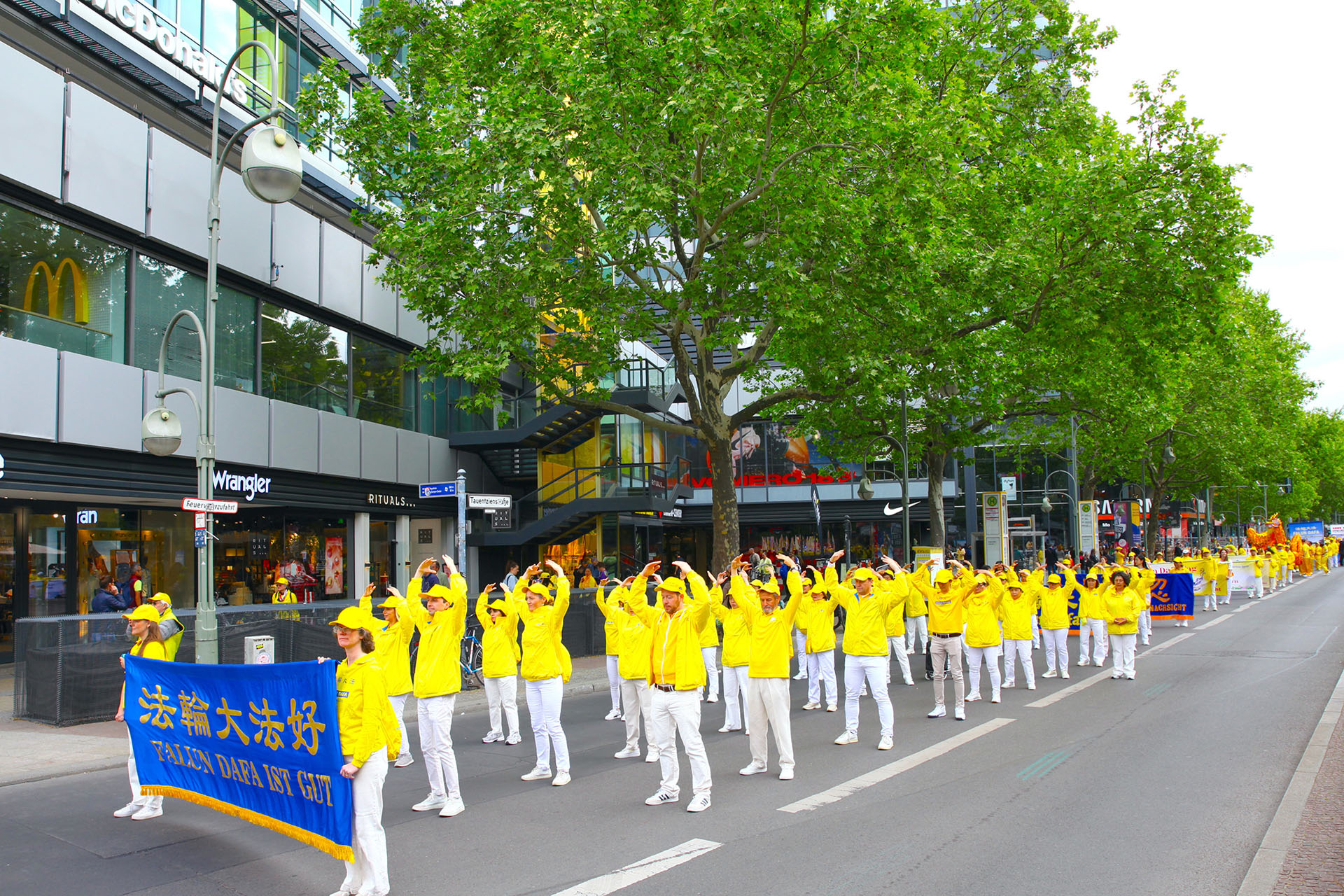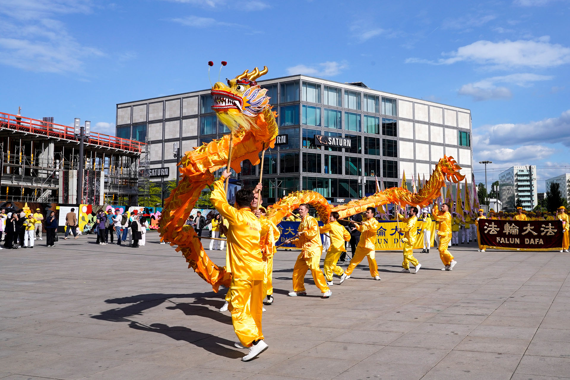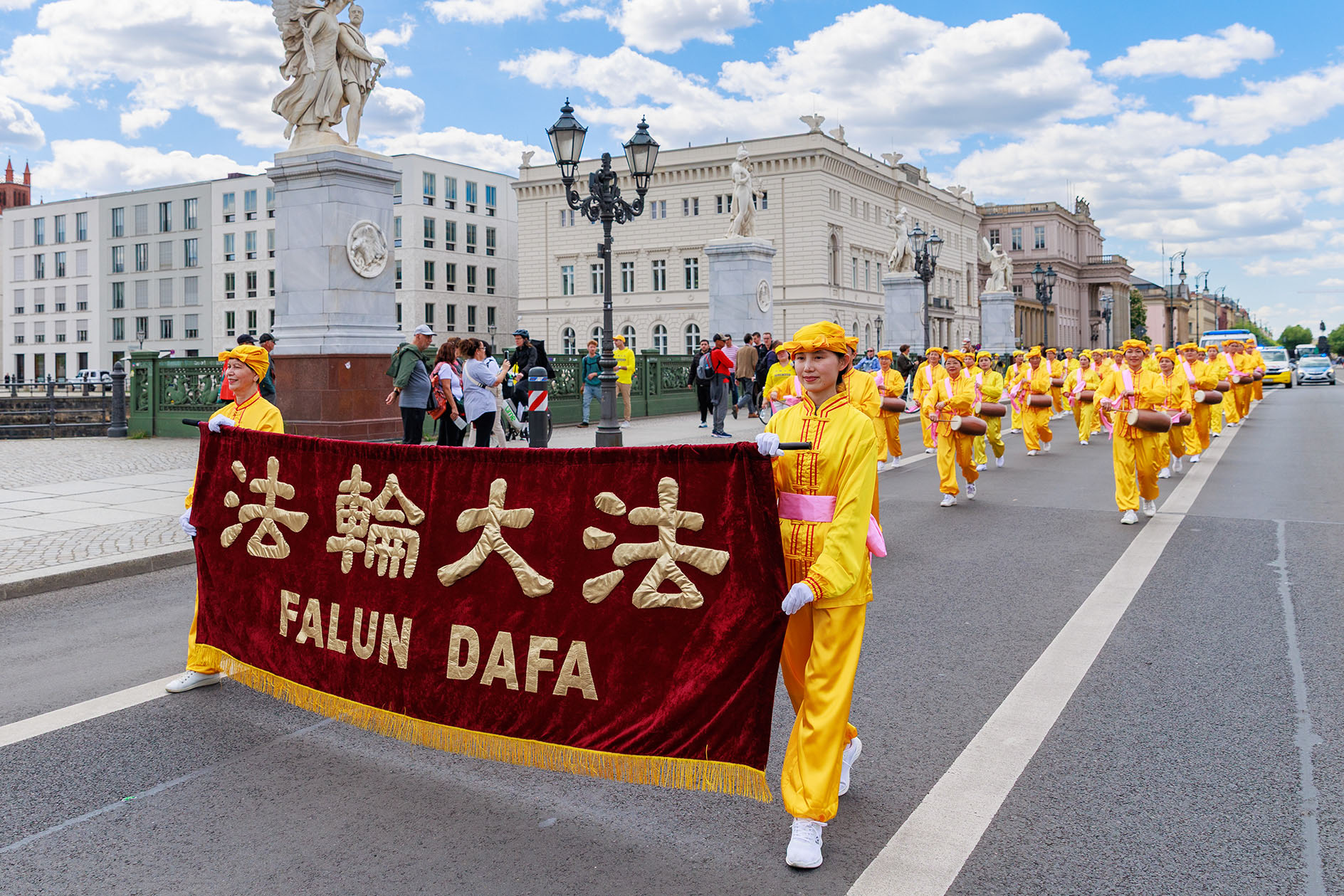 二零二五年五月九至十日,德国法轮功学员连续两天在首都柏林举办大型活动,庆祝第二十六届世界法轮大法日暨师父华诞。活动还邀请了欧洲天国乐团、波兰舞龙队与德国腰鼓队等进行表演,学员们也展示了法轮功功法,吸引了大量民众关注与盛赞。