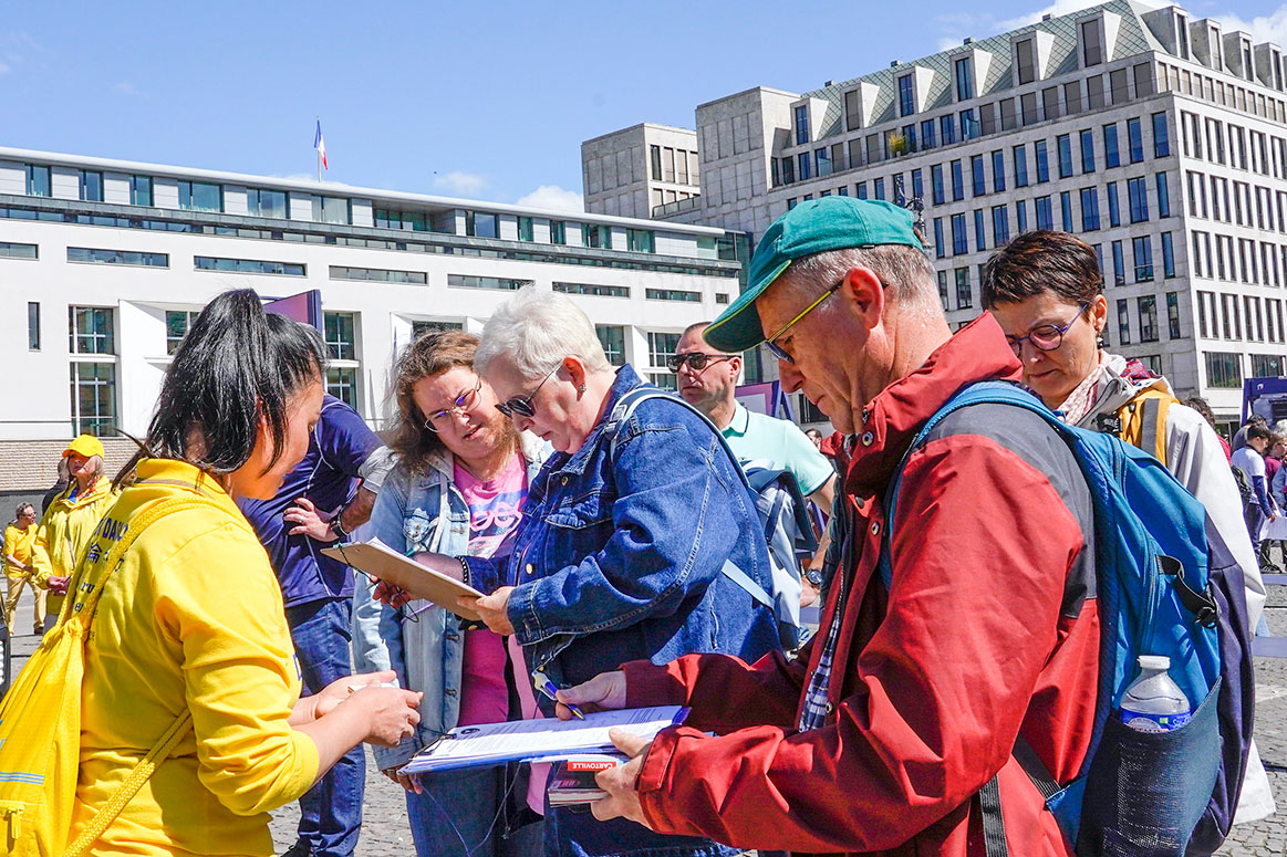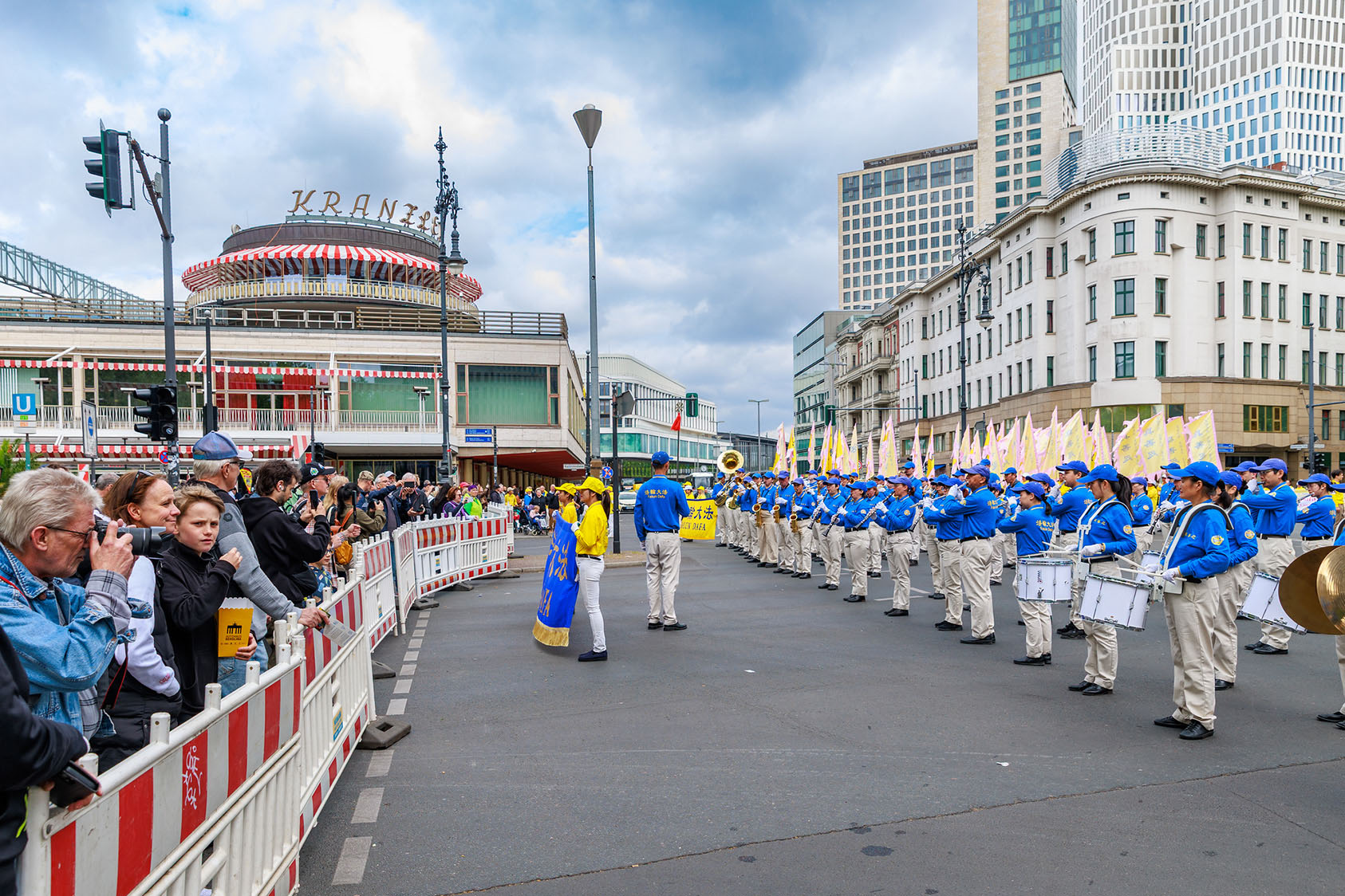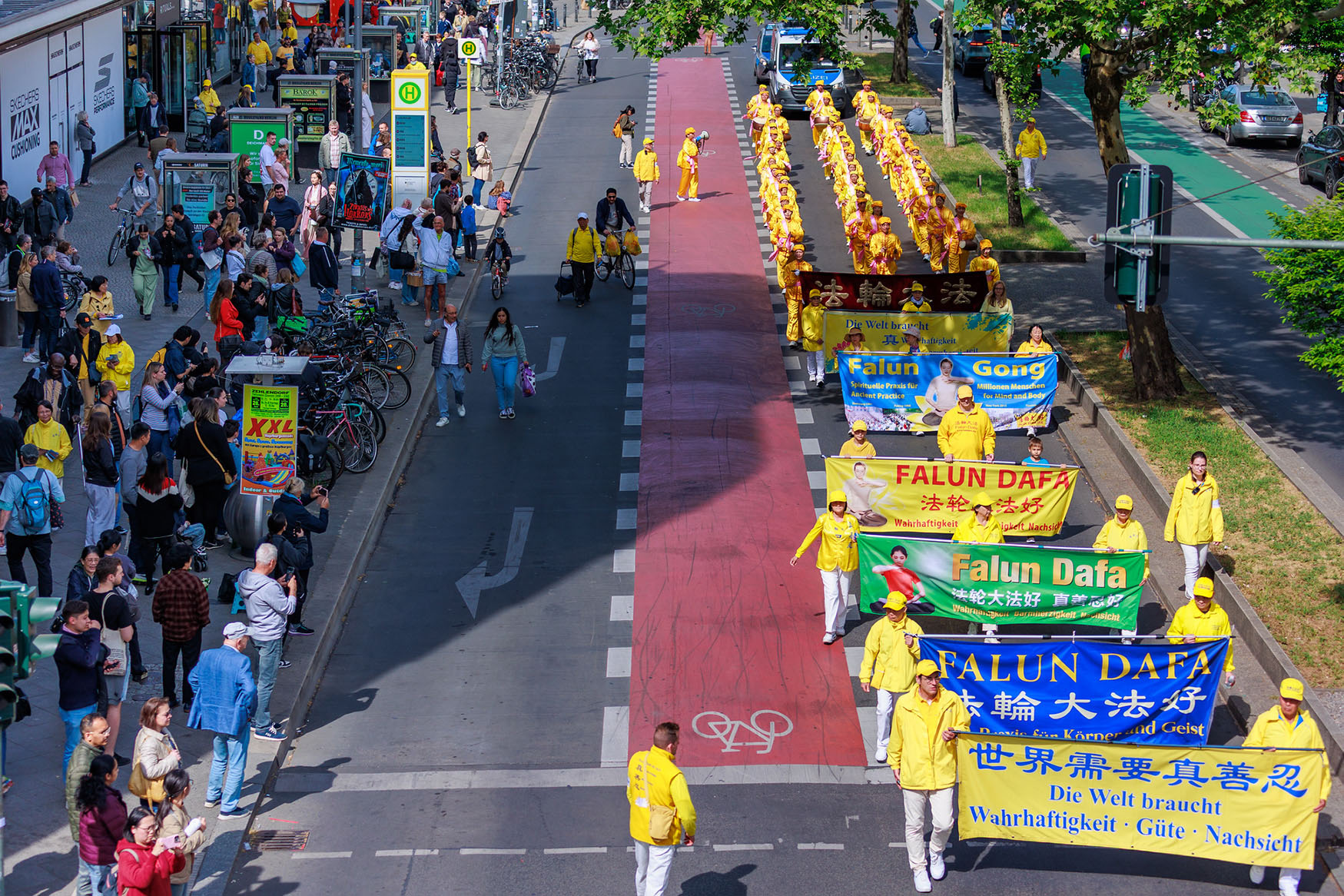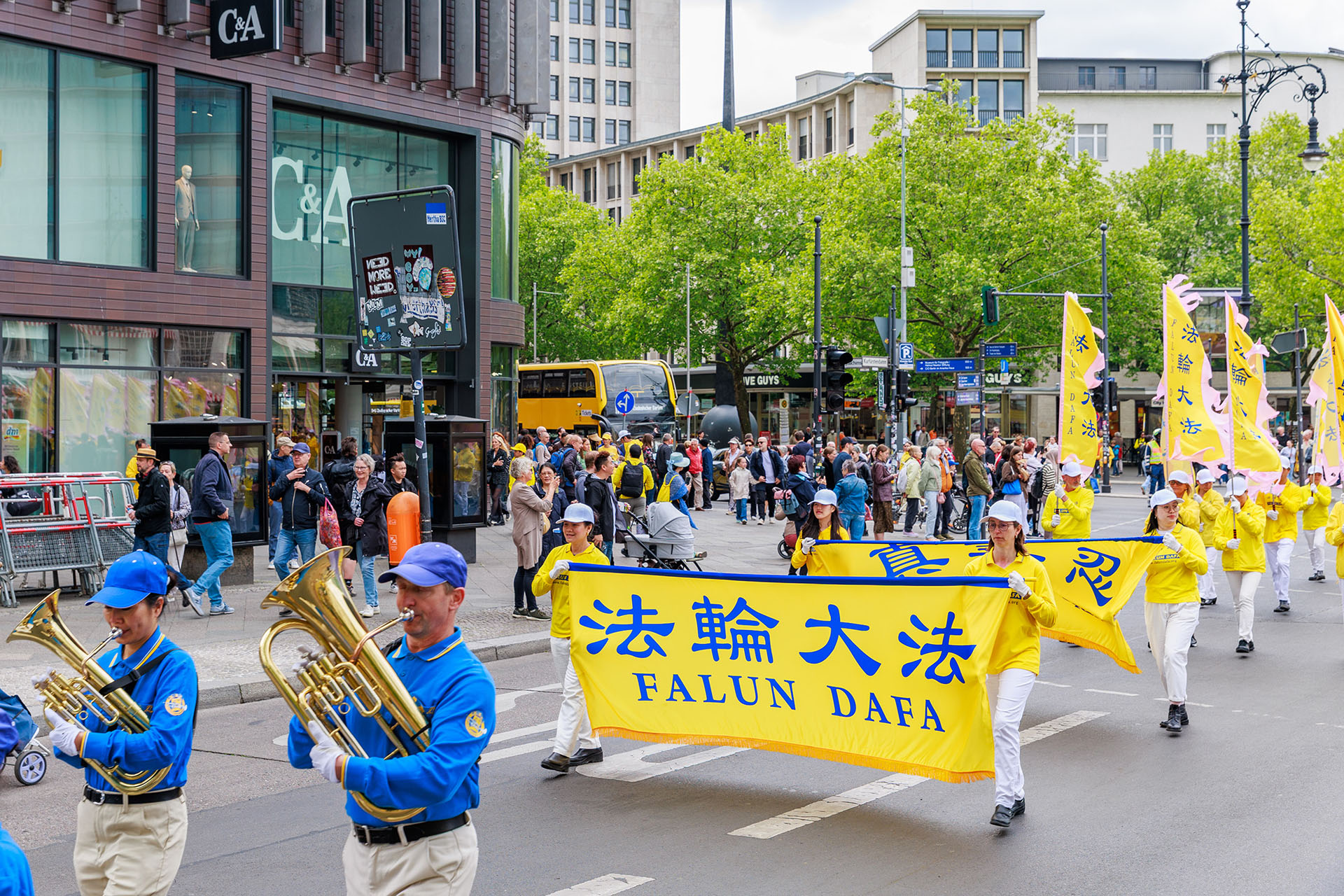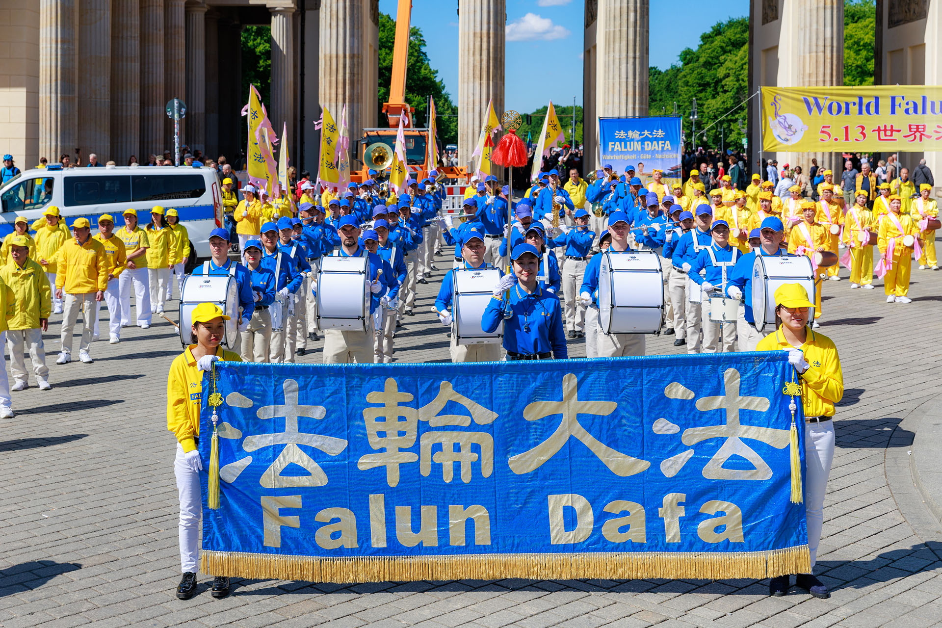 二零二五年五月九至十日,德国法轮功学员连续两天在首都柏林举办大型活动,庆祝第二十六届世界法轮大法日暨师父华诞。活动还邀请了欧洲天国乐团、波兰舞龙队与德国腰鼓队等进行表演,学员们也展示了法轮功功法,吸引了大量民众关注与盛赞。