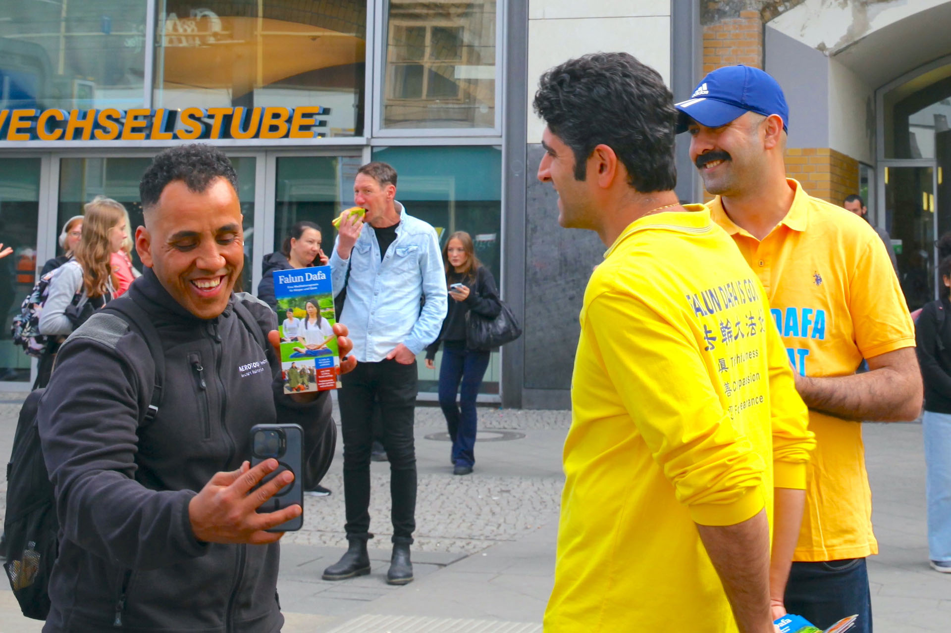 【明慧网二零二五年五月十七日】(明慧记者德祥德国柏林报道)“太好了!真的很精彩,十分和平,让人很安心,非常人性化、很亲切。”当尼科先生在跑步运动时遇见法轮功学员庆祝世界法轮大法日游行队伍时,发出这样的赞叹。