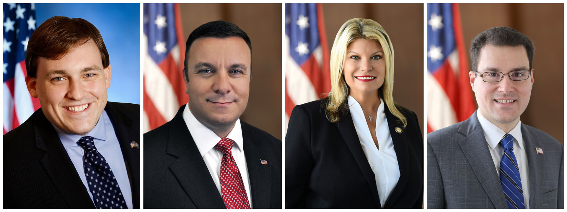 ![]() 图2:第五选区州众议员道格拉斯‧史密斯(Douglas M. Smith)、第九十八选区少数党党鞭卡尔‧布拉本尼克(Karl A. Brabenec)、第二选区州众议员乔迪‧吉格里欧(Jodi Giglio)和第十七选区州众议员约翰‧米库林(John K. Mikulin) |
