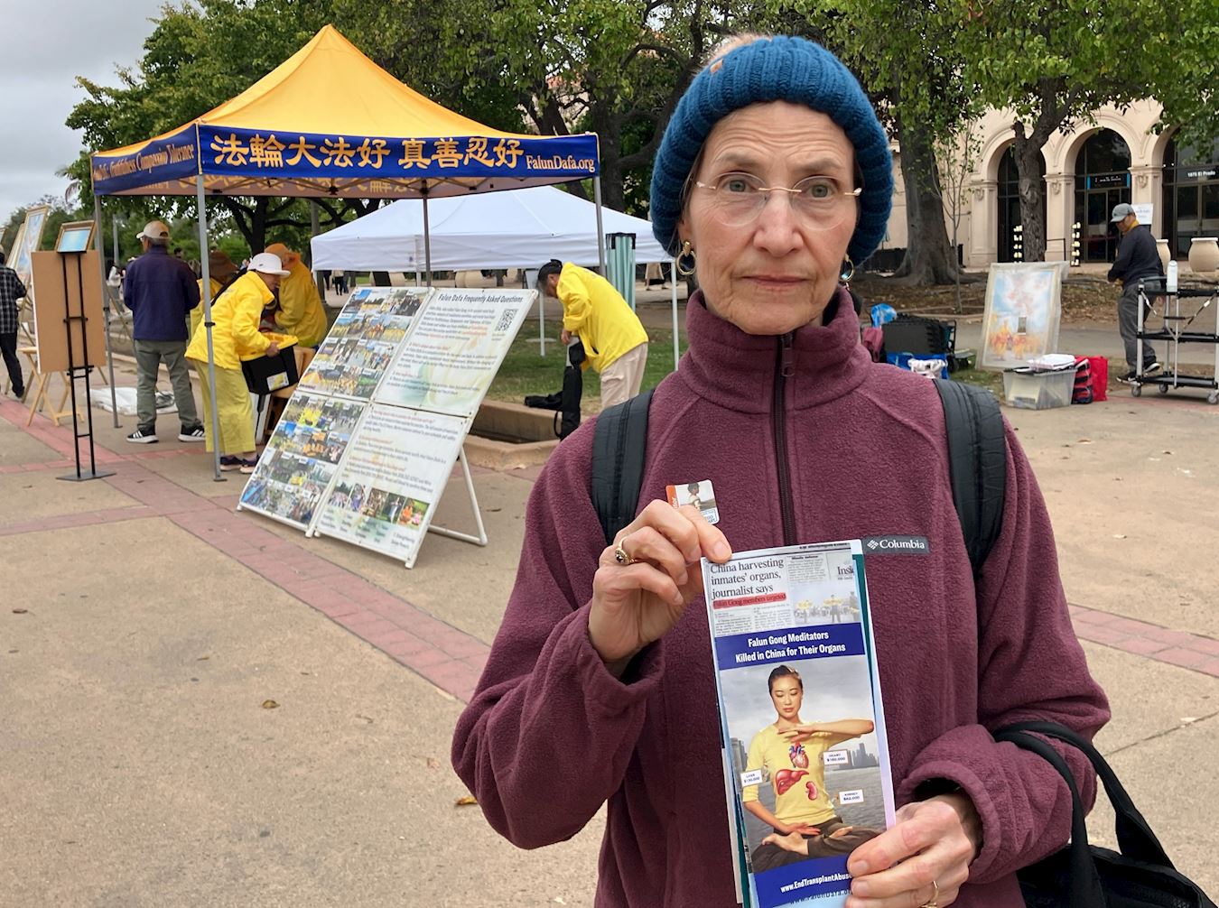 类似的法案已经在众议院通过,现在我们需要这个法案在参议院通过。”她很快从法轮功学员那里了解了相关信息,并传递给路人,“你如何帮助阻止这场种族灭绝?联系你的联邦参议员,让他们知道你希望他们投票支持S817,以帮助停止在中国的对法轮功修炼者的种族灭绝和强制器官摘取。”