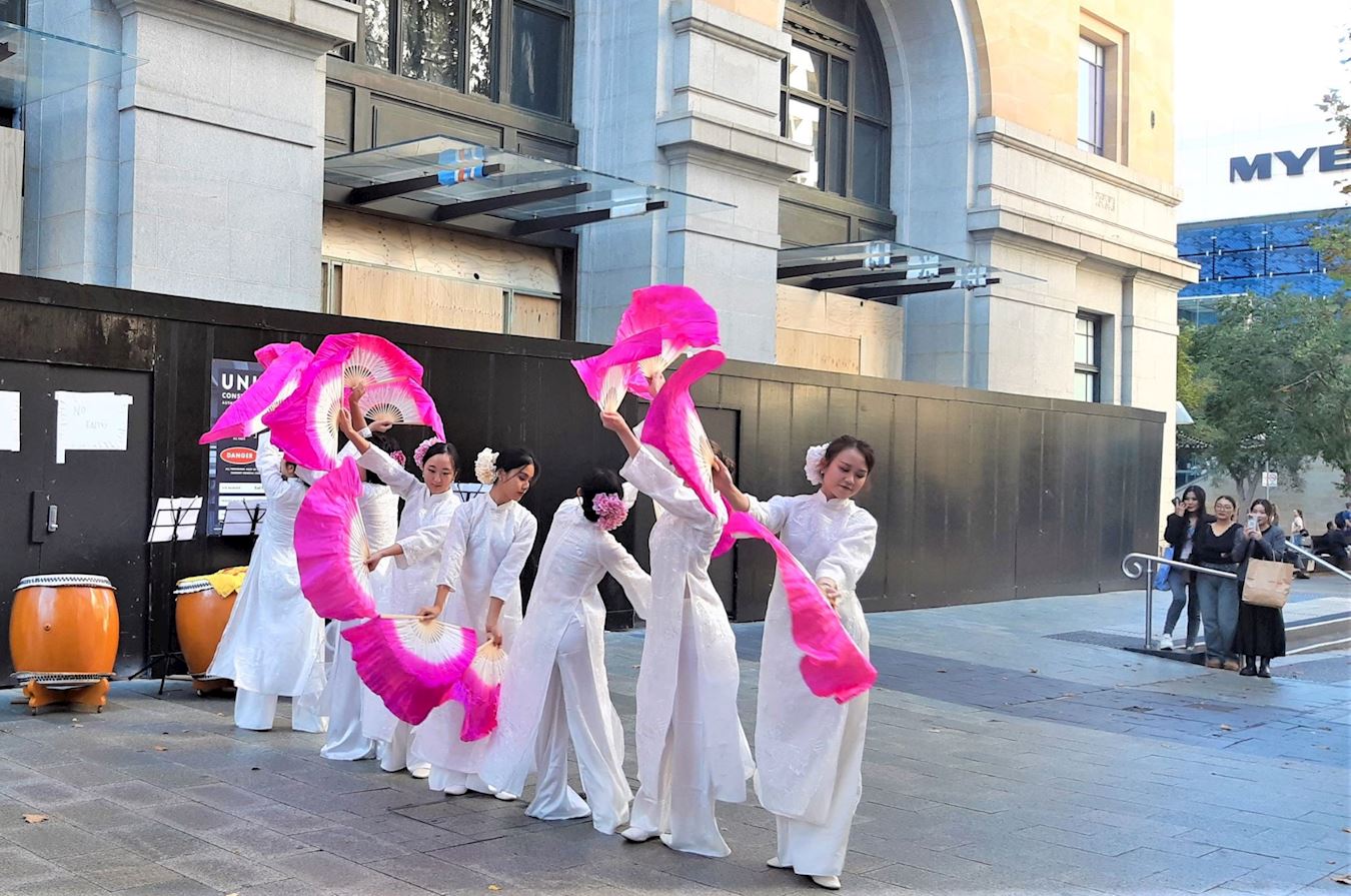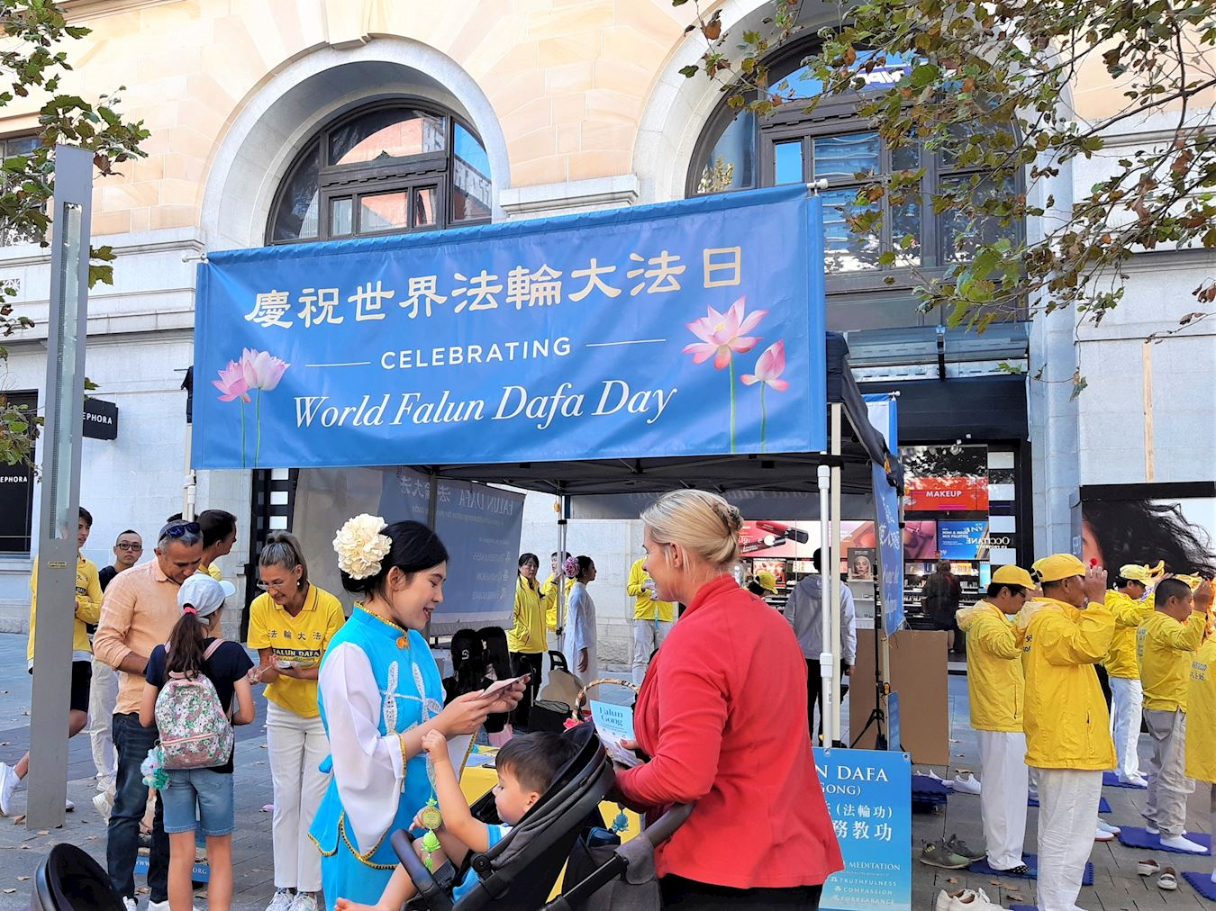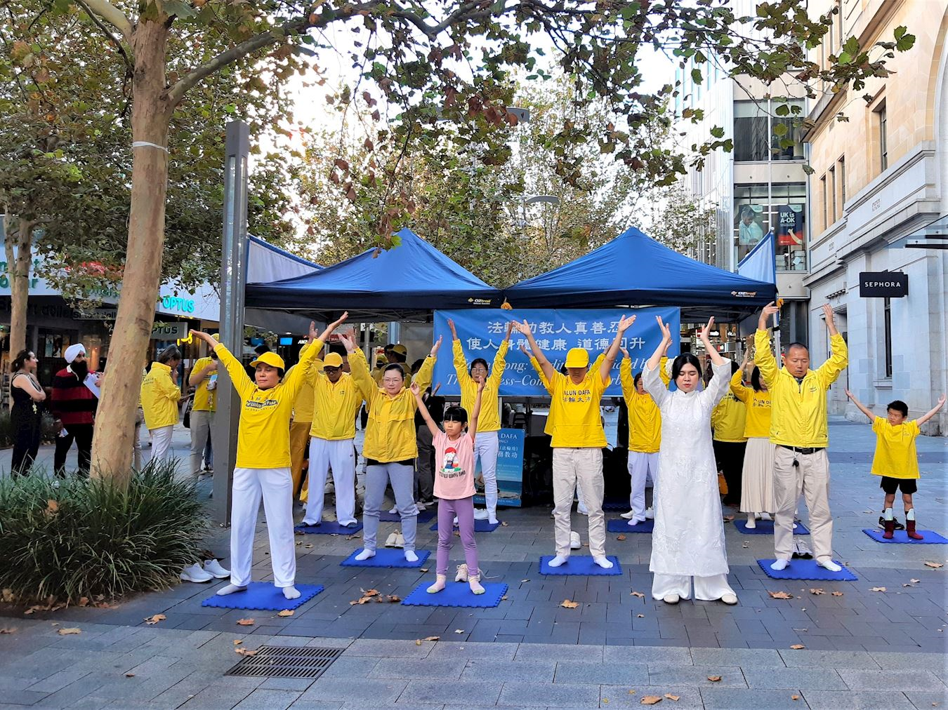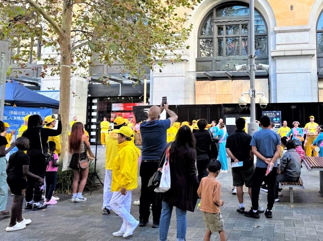 【明慧网二零二五年五月二十一日】(明慧澳洲珀斯记者站报道)二零二五年五月十七日,西澳法轮功学员在珀斯市中心默里街购物中心步行街(Murray Street Mall)举办集会活动,以传递真相、功法演示和文艺表演的形式,庆祝第26届世界法轮大法日暨大法创始人李洪志先生华诞。珀斯市民驻足观赏喝彩,并赞颂真善忍,与法轮功学员一起欢度这一普天同庆的日子。