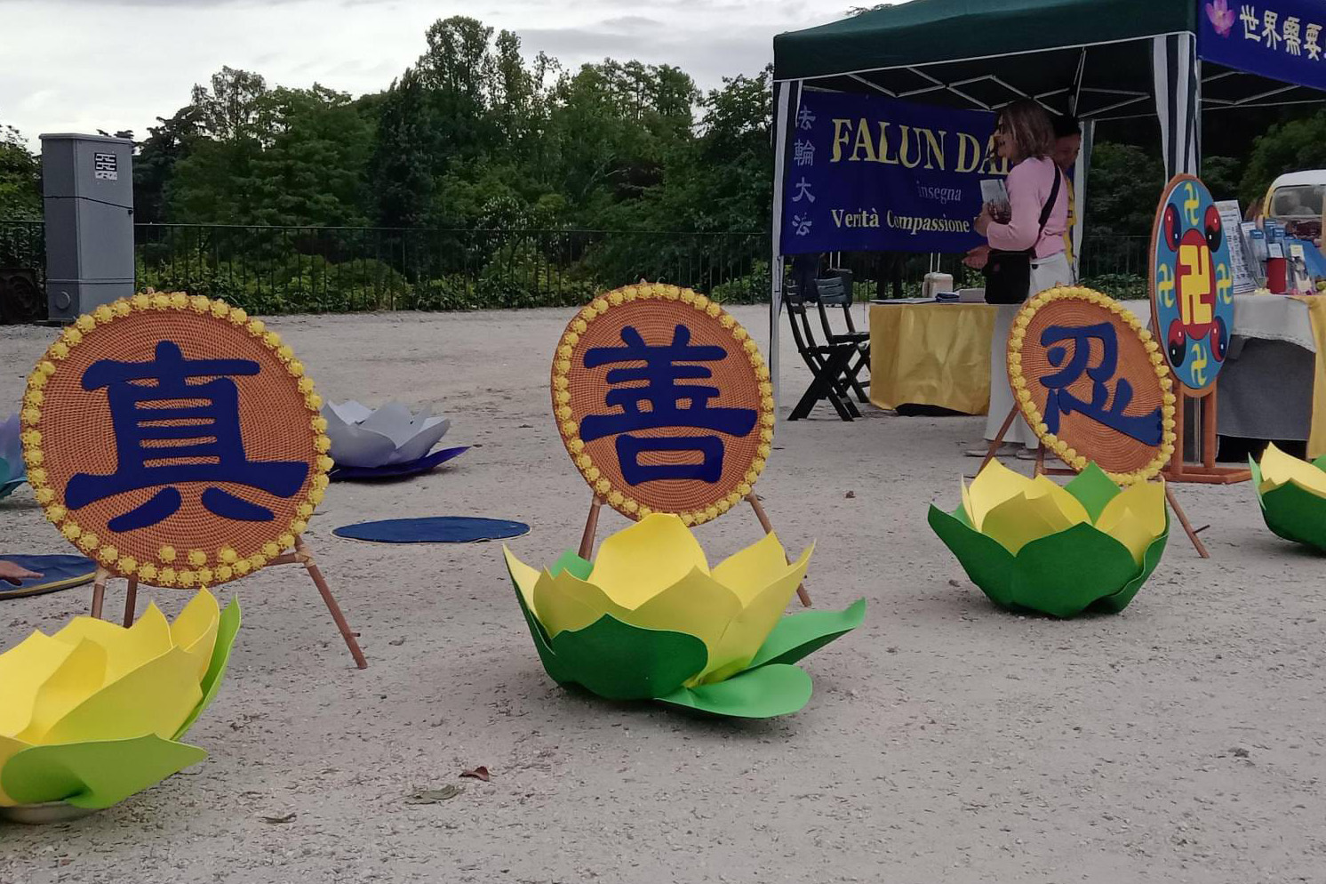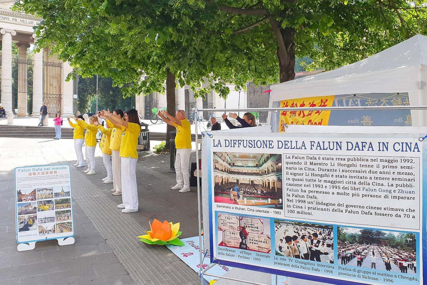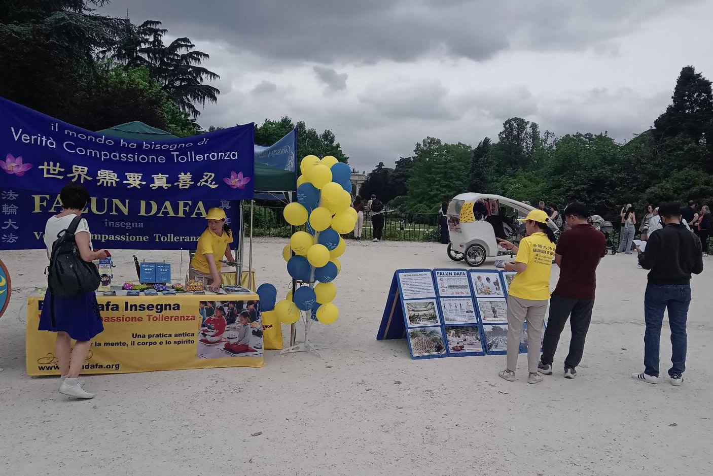 二零二五年五月四日,米兰法轮功学员在米兰城堡附近的森皮奥内公园(Parco Sempione)举办了世界法轮大法日庆祝活动。