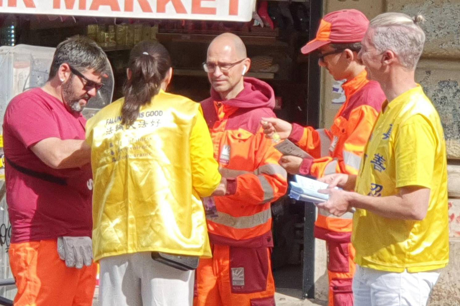 还有几个人好奇地走近学员,问这是否类似于气功和太极拳。当学员向他们讲解法轮功的与众不同之处,除了缓慢的炼功和打坐之外,还有指导人们提高自我、改善道德的深奥教义时,他们对法轮功表现出了浓厚的兴趣,并表示想尝试炼功。