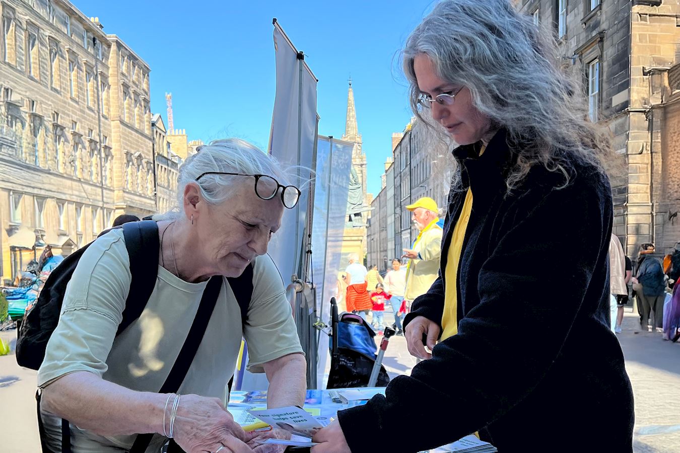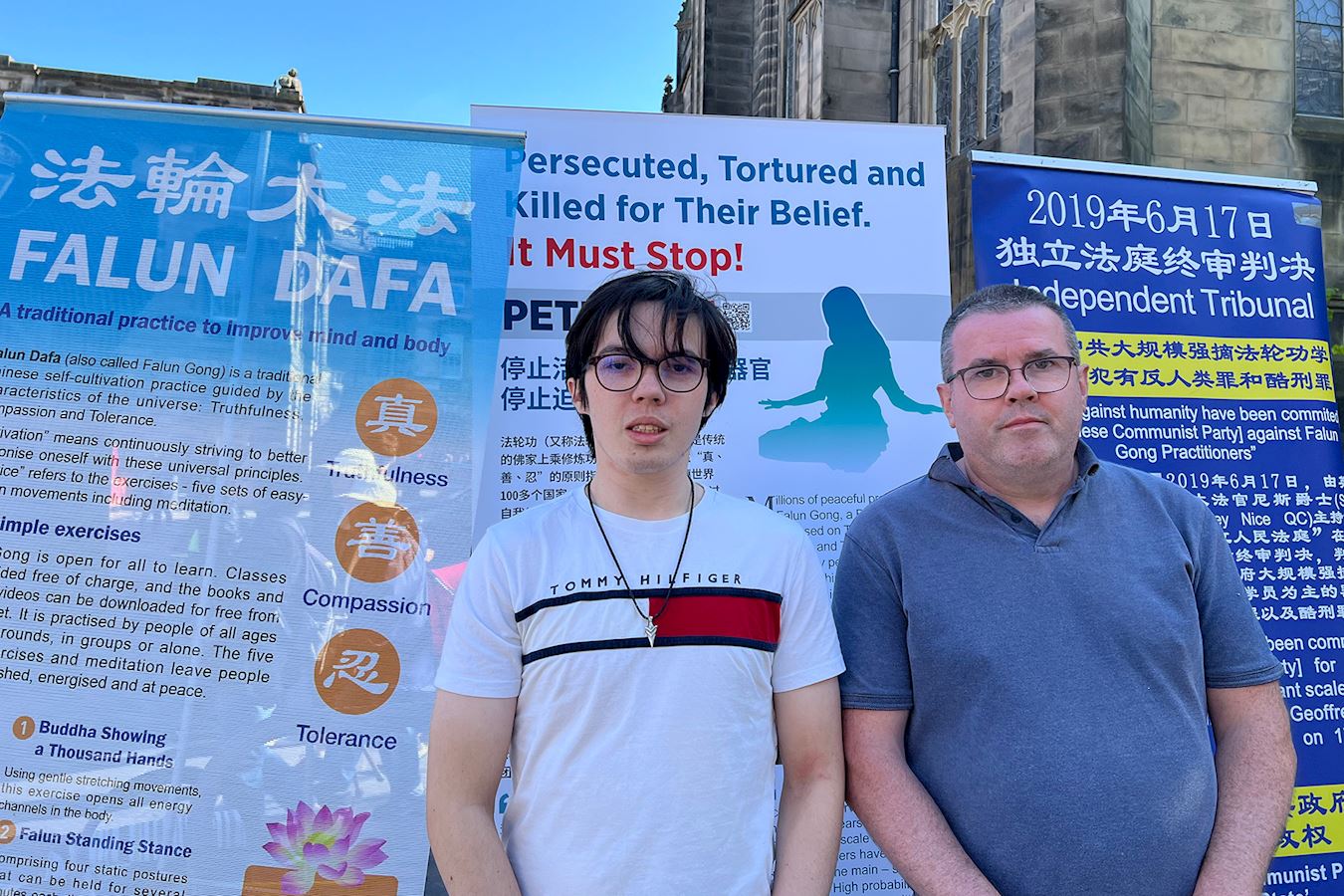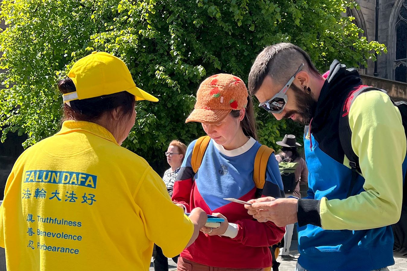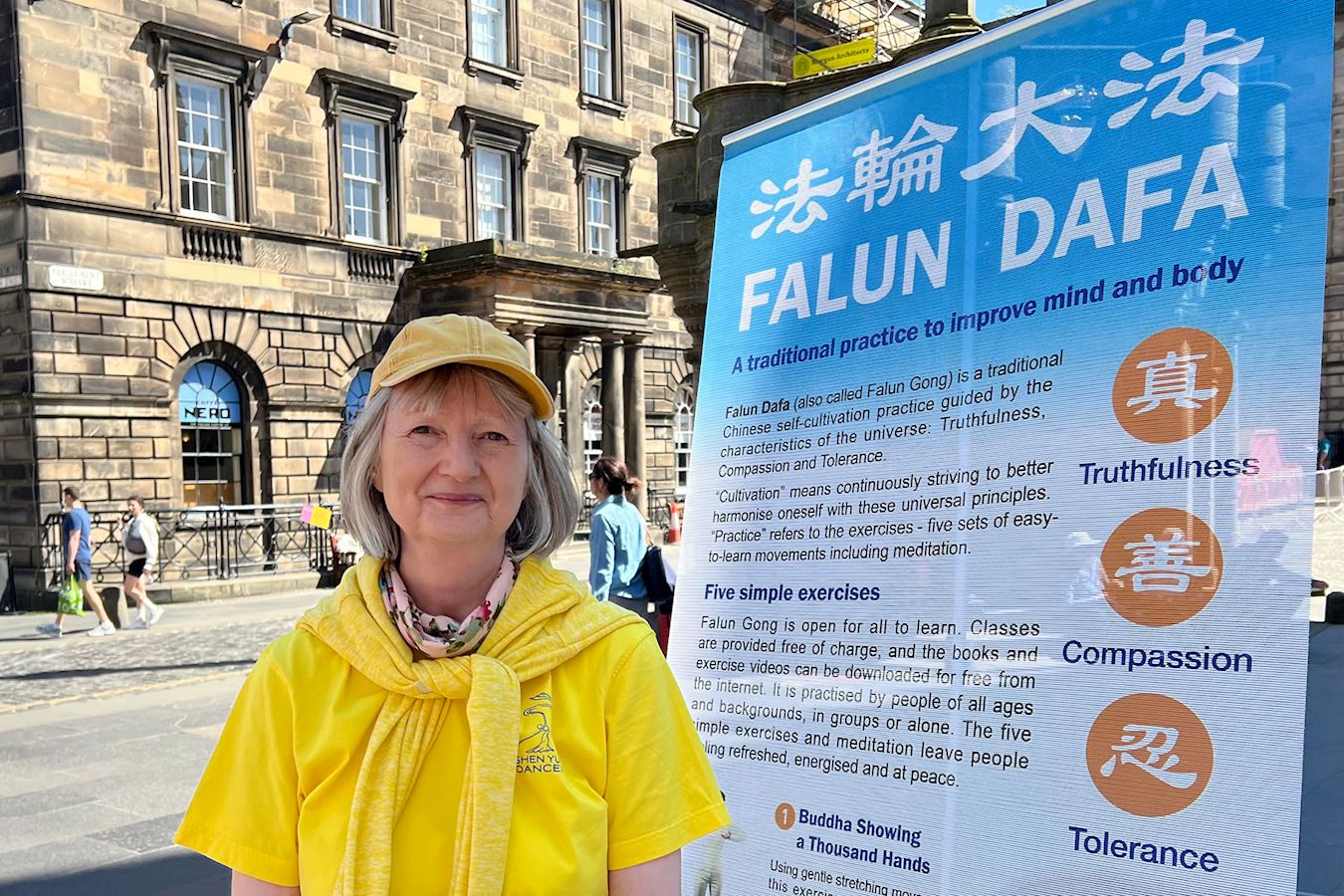 值得一提的是,活动当天,正是苏格兰教会年度大会开幕日,召开会议的市政厅,正对着学员的弘法点,两辆载着参会长老的汽车缓缓从市政厅驶出,他们注目着学员的炼功场面和真相展板,他们看到这群人正为中国大陆民众争取信仰自由而努力。