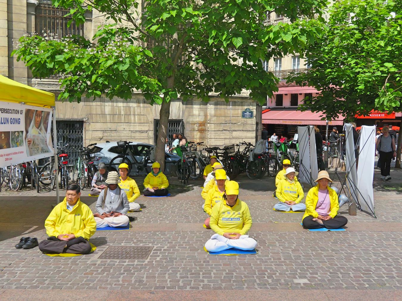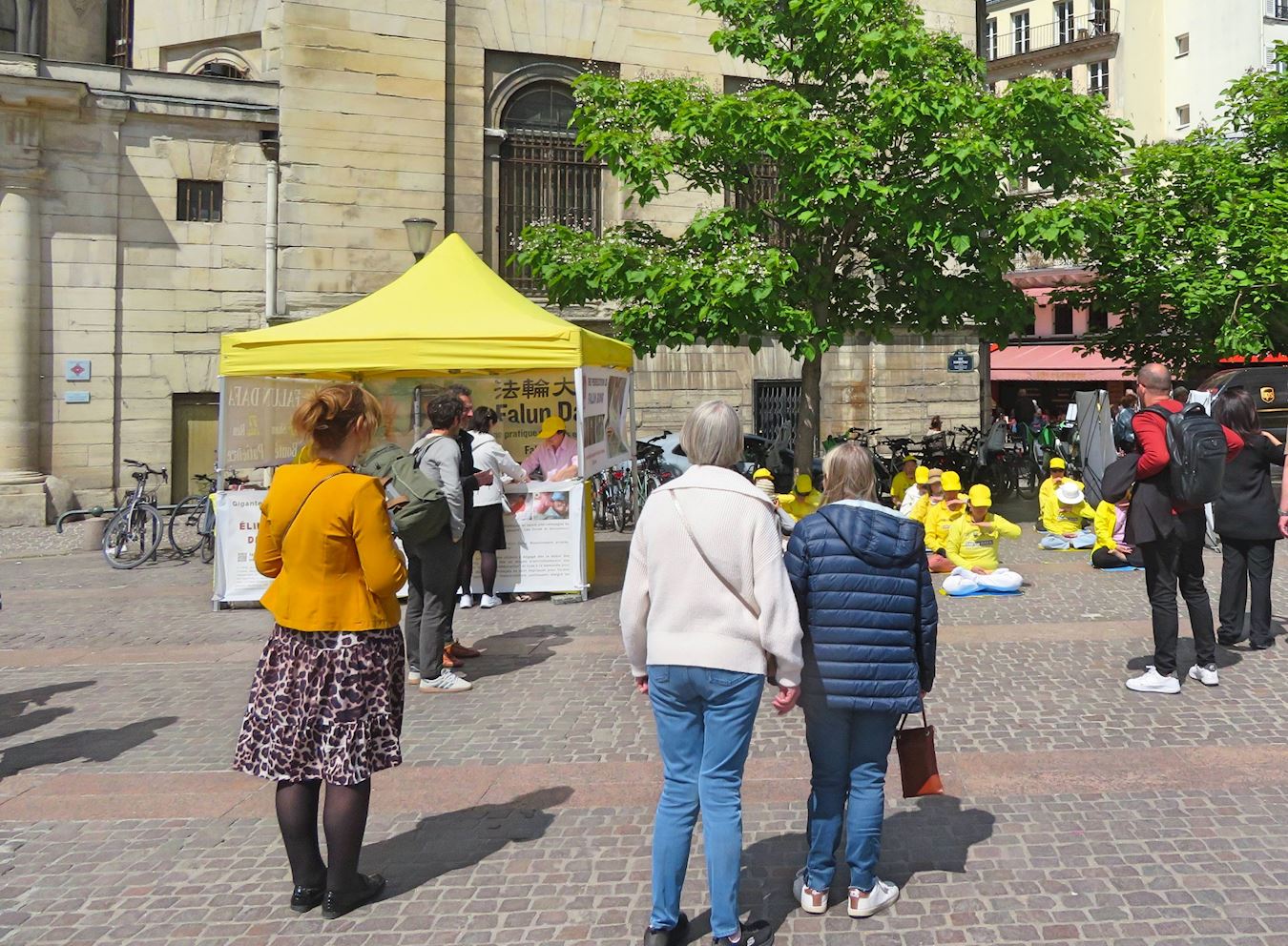 ![]() 图1:二零二五年五月二十三日,法轮功学员在巴黎市中心进行了弘法、炼功和讲真相的活动,引人注目。 |