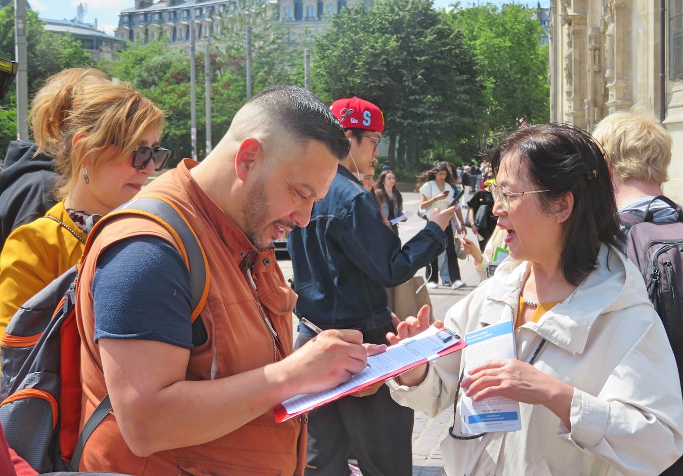 ![]() 图3:人们签名支持法轮功学员反迫害。 |