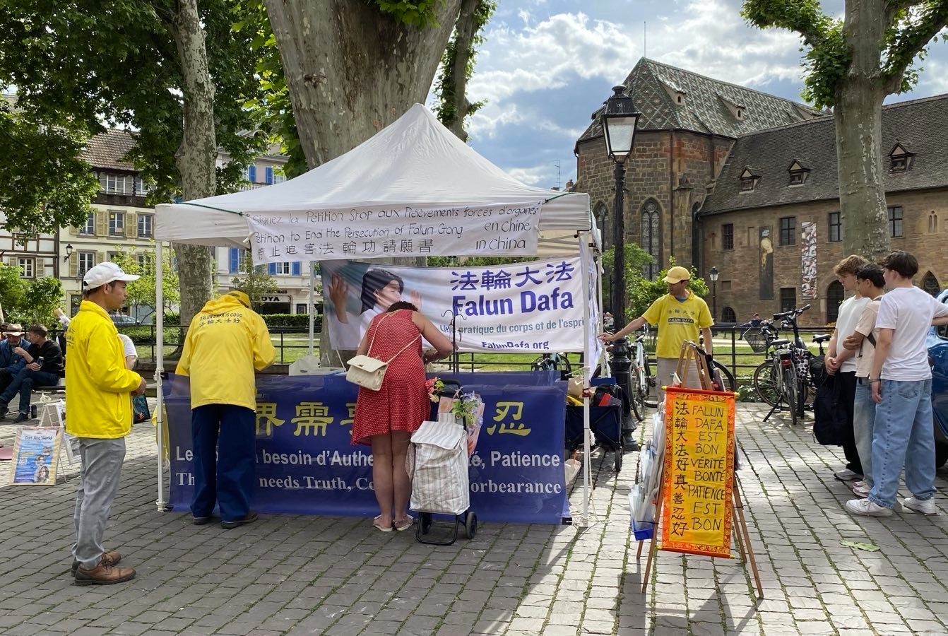 【明慧网二零二五年五月三十日】五月的天气温暖宜人。来自法国和德国的部分法轮功学员在法国东部的阿尔萨斯地区举办了法轮功信息日活动。这些活动于五月二十四日和二十五日分别在科尔马(Colmar)和斯特拉斯堡(Strasbourg)两个城市举行。