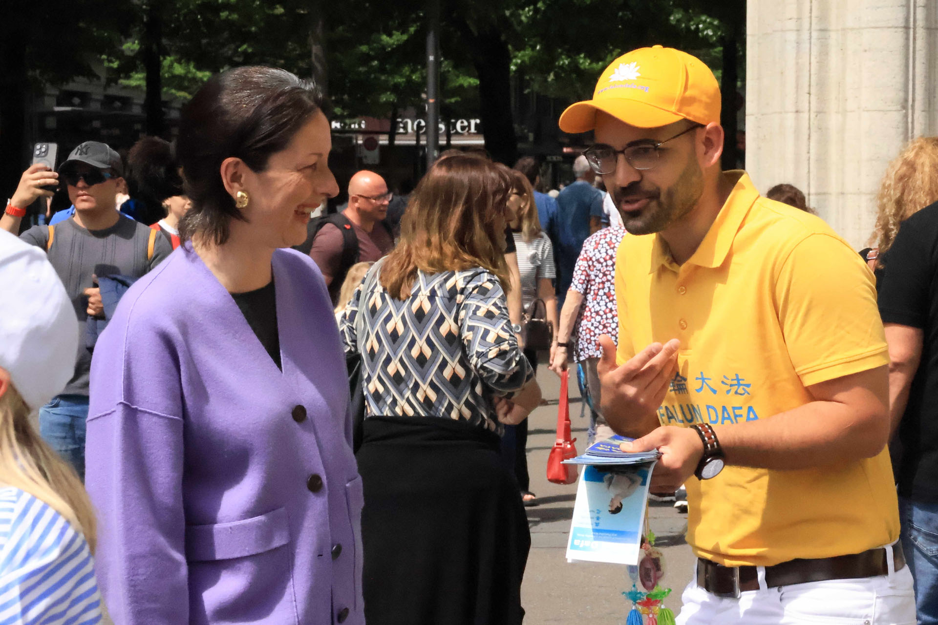 “我对此很感兴趣,特别是真、善、忍,整个世界都应该如此。不仅仅是在中国,而是在瑞士、在整个世界都应该这样(遵循真、善、忍),这是世界性的。”已经退休的本克(Benker)女士看到庆祝活动后非常感兴趣,来到讯息台前和学员聊了很久。她了解到:“法轮功不仅仅是(炼)身体上的这些动作,也会改变(修)内心。”