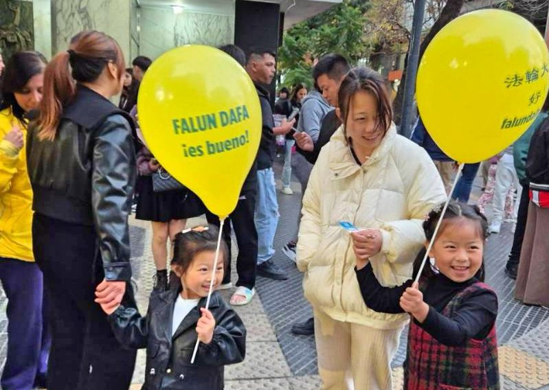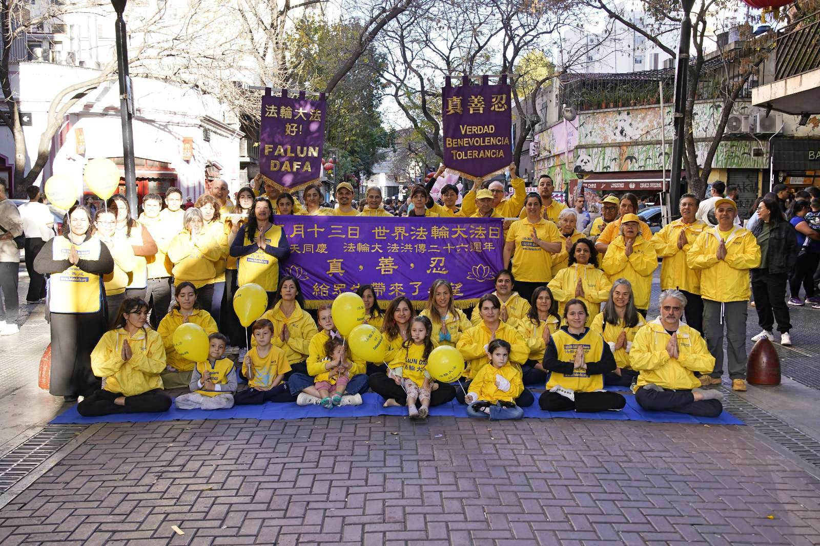 当天,天气晴朗怡人,唐人街热闹非凡。法轮功学员在唐人街门多萨街(Mendoza)与阿里贝尼奥斯街(Arribeños)的交汇处举行庆祝活动,这里也是阿根廷学员二十多年来讲真相的地方。
