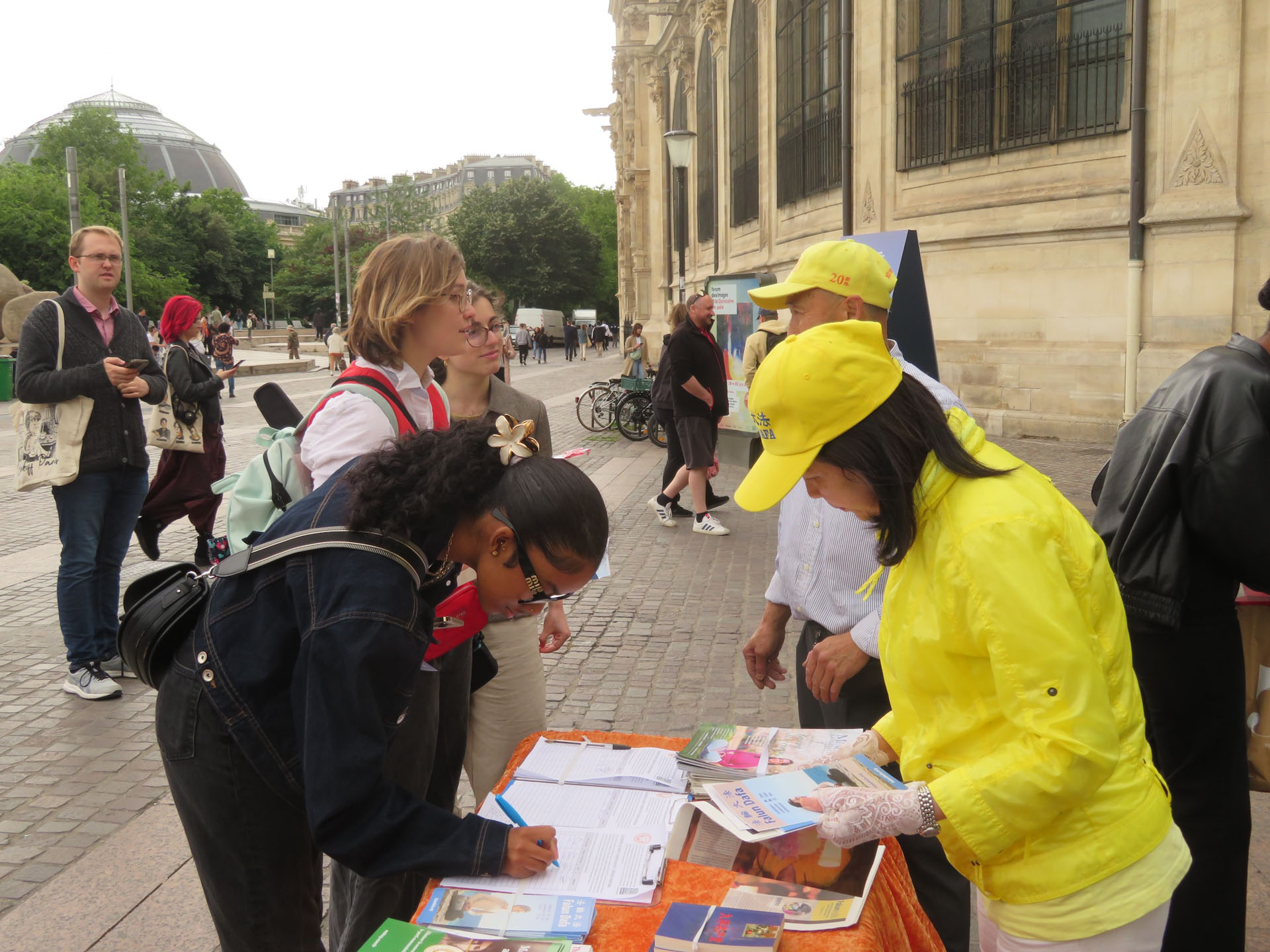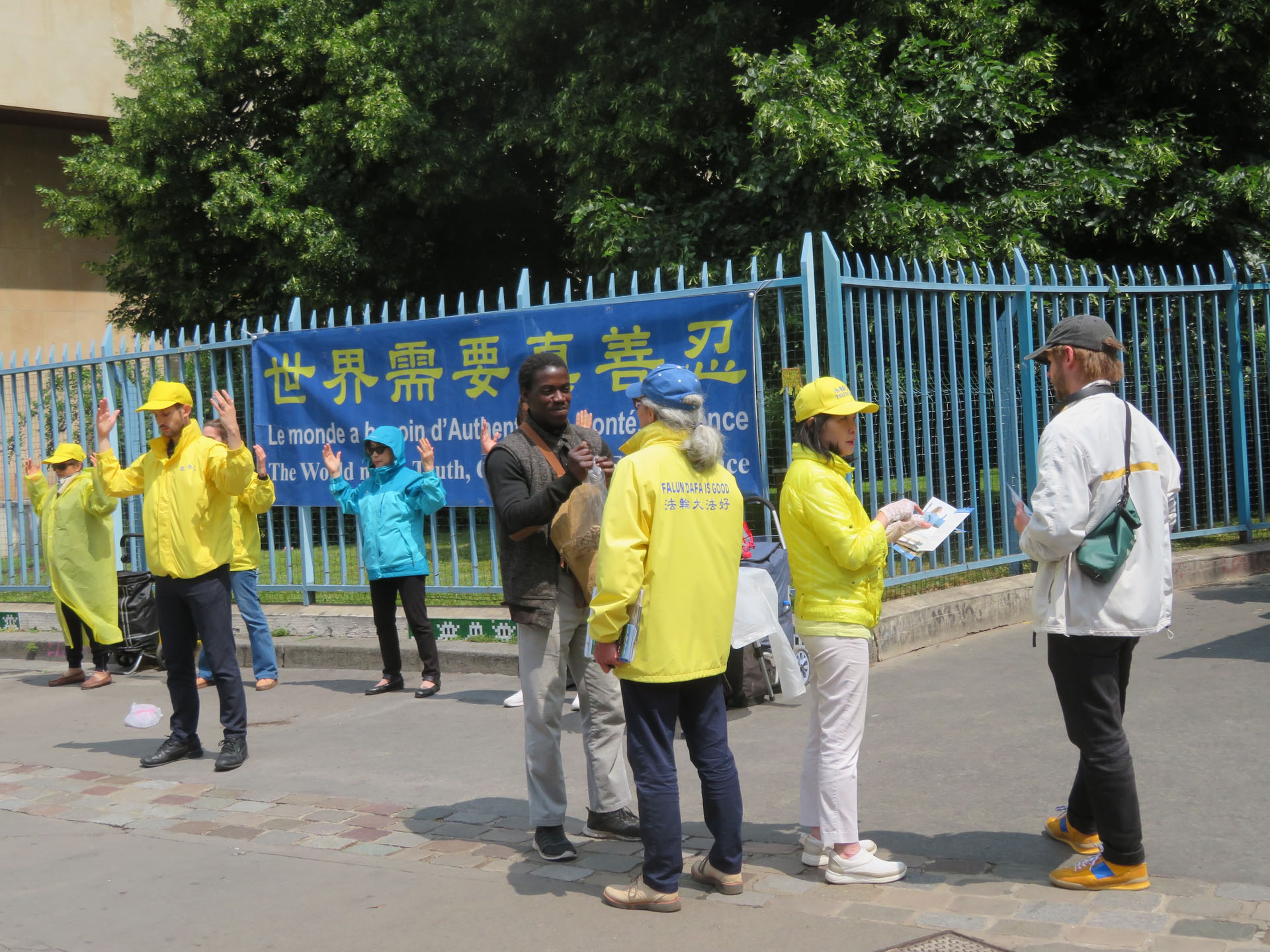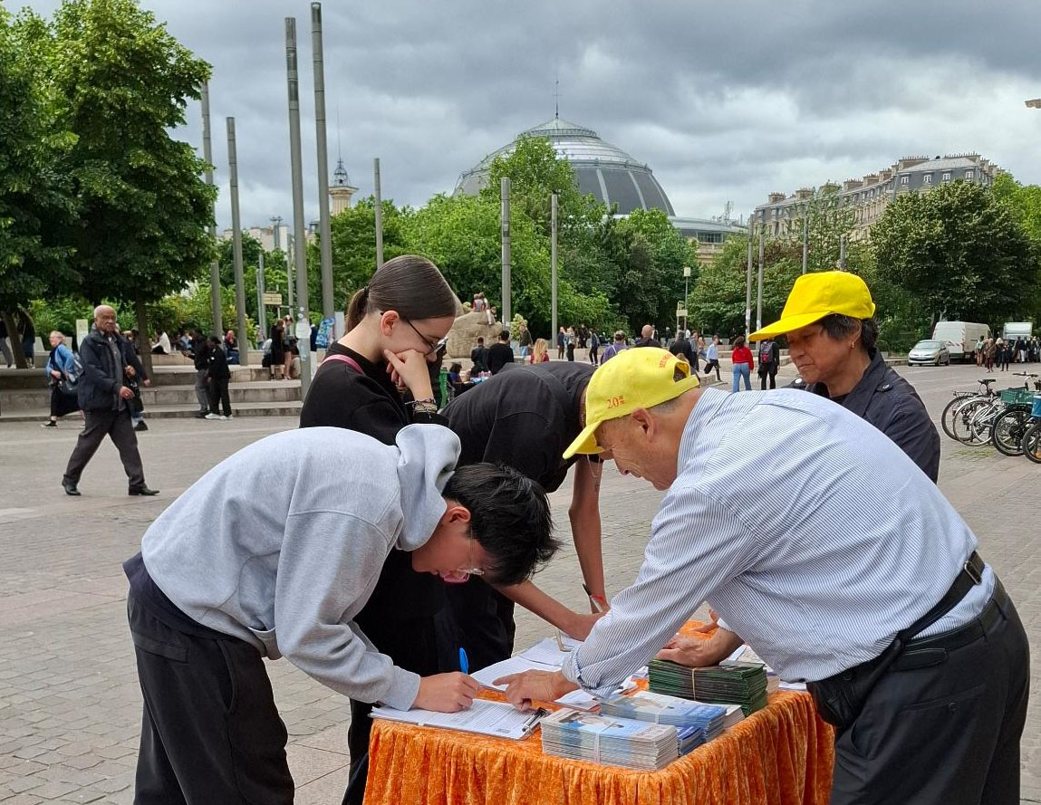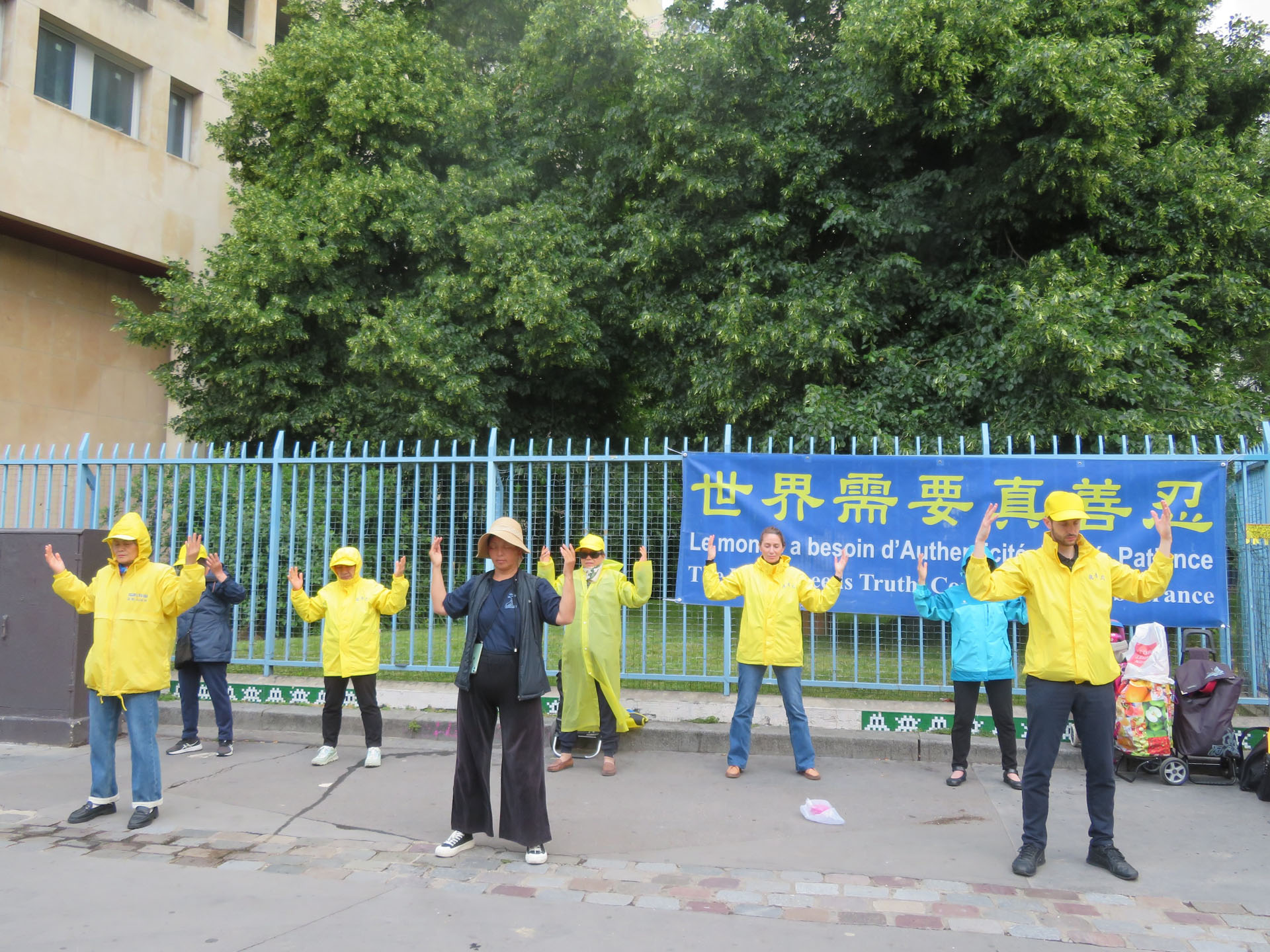 二零二五年六月六日星期五,法轮功学员在巴黎美丽城举办法轮功信息日活动。