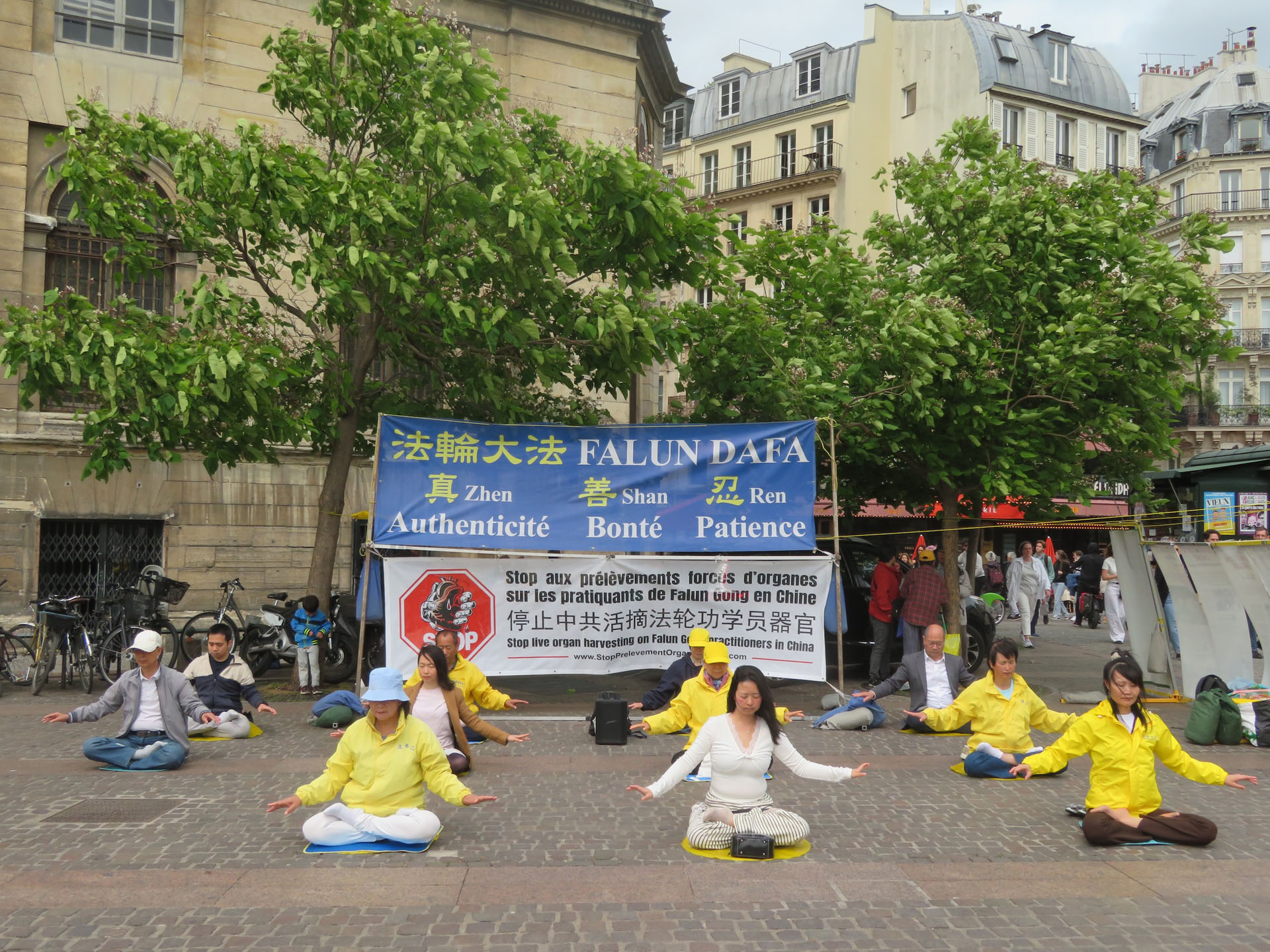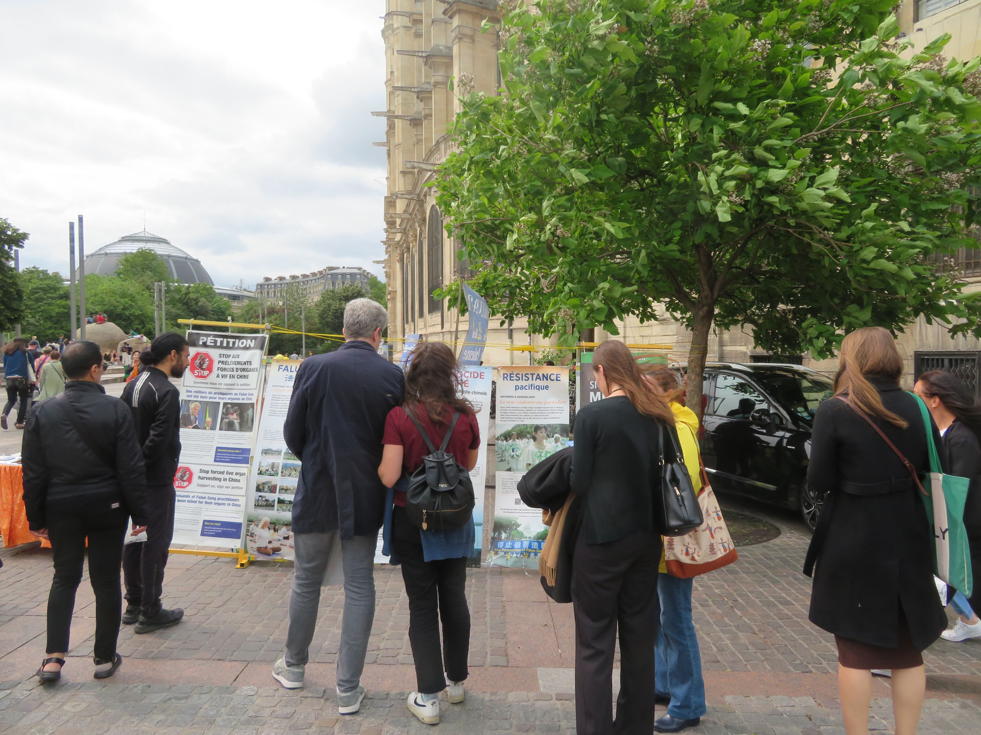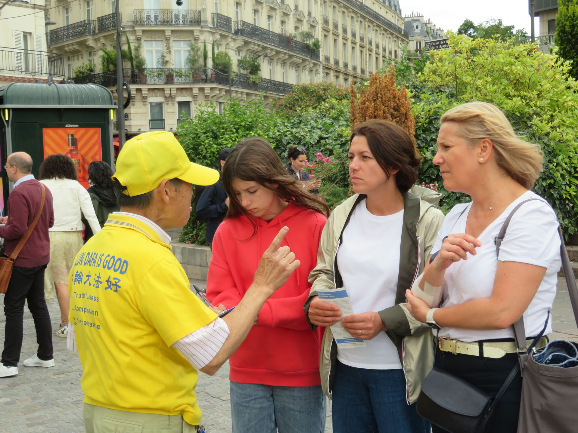 二零二五年六月六日星期五,法轮功学员在巴黎美丽城举办法轮功信息日活动。