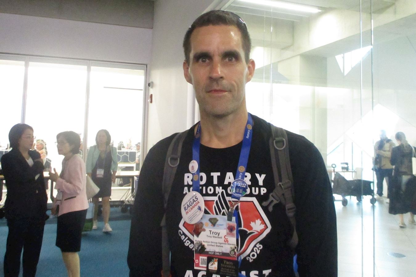 反奴役扶轮社行动小组(RAGAS)成员特洛伊·斯坦塞尔(Troy Stansell)是美国的一位质量工程师。他介绍,自己以前在休斯顿参加会议时,一位法轮功学员讲述了她在劳教所中被迫劳动并被抽血的经历,那时,他就获悉了中共活摘器官的罪恶。