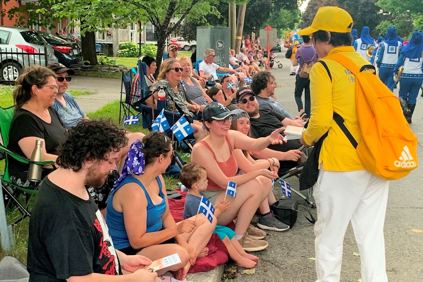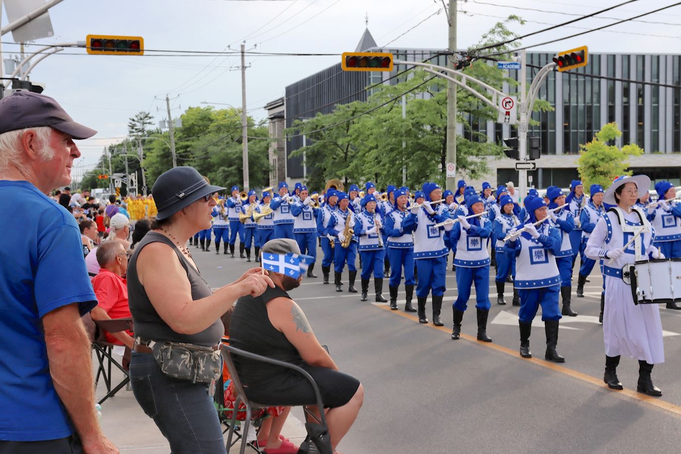 在四公里长的沿途,有数万名观众观看,法轮功队伍受到热情欢迎。法轮功团体连续十多年受邀参加,被当地民众视为游行不可缺少的部分。 据组委会主席米歇尔·布吉先生(Michel Bougie)介绍,每年游行结束后,人们都恳请游行组委会明年再邀请天国乐团。
