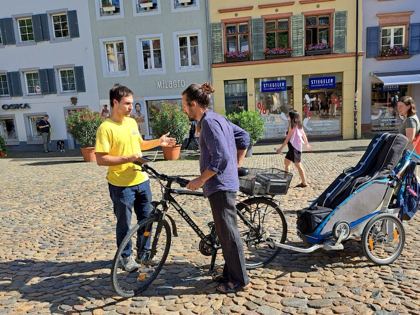 【明慧网二零二五年六月五日】(明慧德国记者站报道)二零二五年五月三十一日,来自德国与法国的法轮功学员在德国弗莱登堡(Freiburg)商业中心奥古斯汀广场(Augustiner Platz)举行了信息日活动。学员通过功法展示、发放传单、与路人交谈的方式,向来往民众展示了法轮功的美好,揭露中共迫害法轮功的真相。