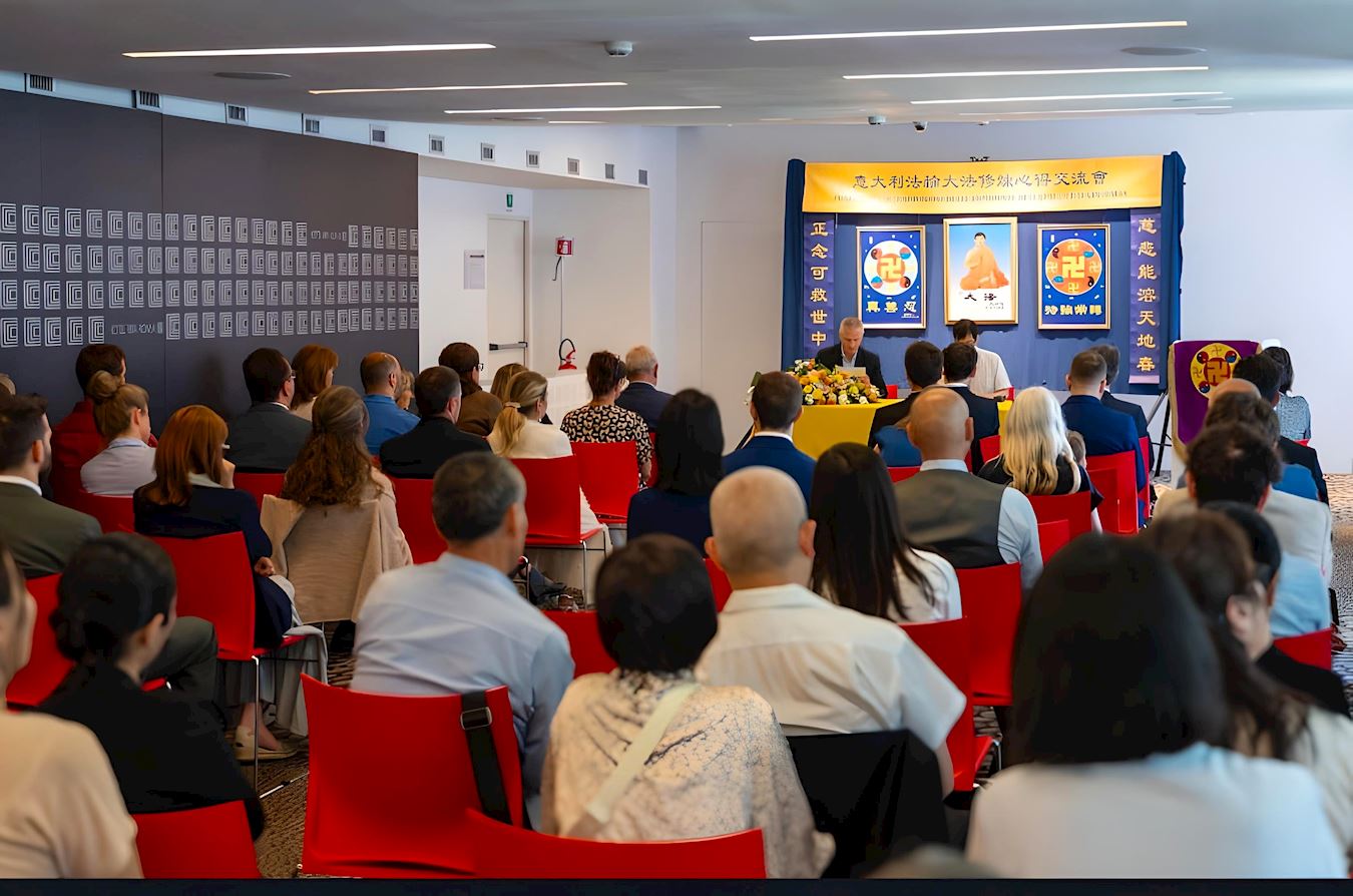 '图1:二零二五年七月六日,意大利法轮大法修炼心得交流会在首都罗马举行。图为法会现场。'