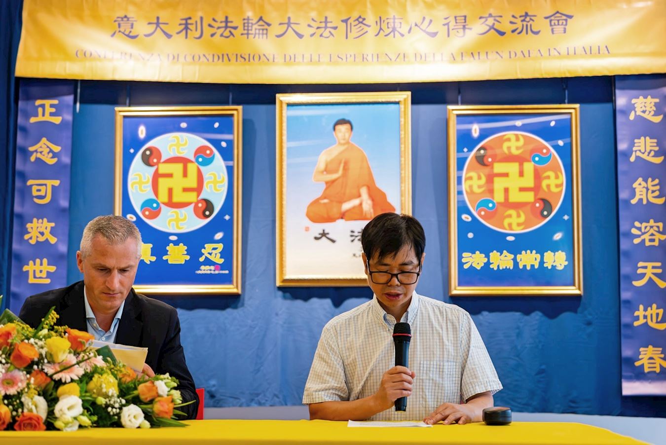 在法会上,来自米兰的蒋先生讲诉了自己在经历了危险的夺命病业关后,对人生和修炼的思考。他说到:“在医院我目赌了病人痛苦的呻吟或是哭叫,人在病业面前是多么的渺小与无助。生老病死,人生无常,唯有无奈的叹息!这使我对大法更加坚信,我要修好自己,走出人的层次,并能更好地参与助师正法、救度众生!”